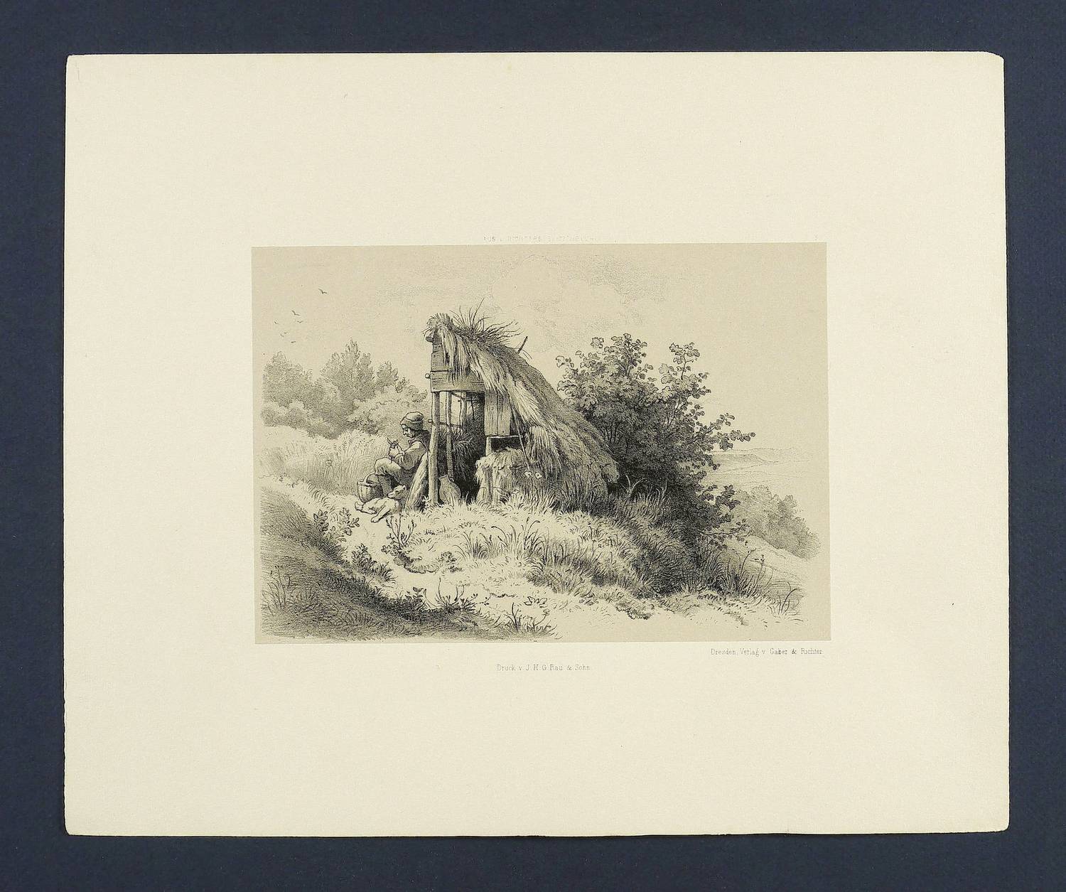 Hoff-Budde 3238. Hoff 3026. – Aus: Adrian Ludwig Richter, Aus Ludwig Richter's Skizzenbuch. Landschaftliche Studien und Staffagen, nach den Originalen auf Stein übertr. von Woldemar Rau (Dresden: Gaber & Richter 1857). – Oberhalb der Darstellung bezeichnet. Unterhalb Drucker- und Verlagsadressen. – Blatt Nr. 5 der Folge. – Sehr guter Zustand.
