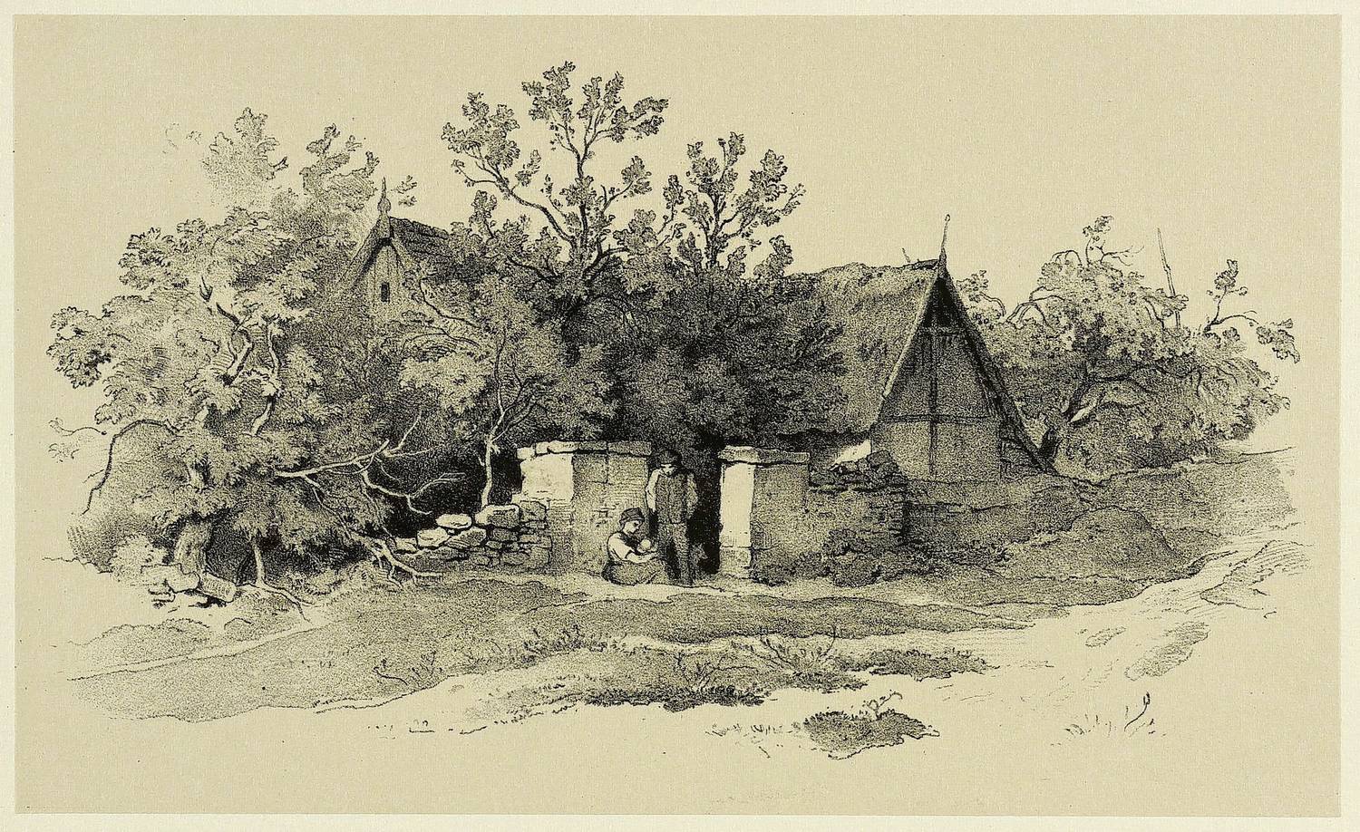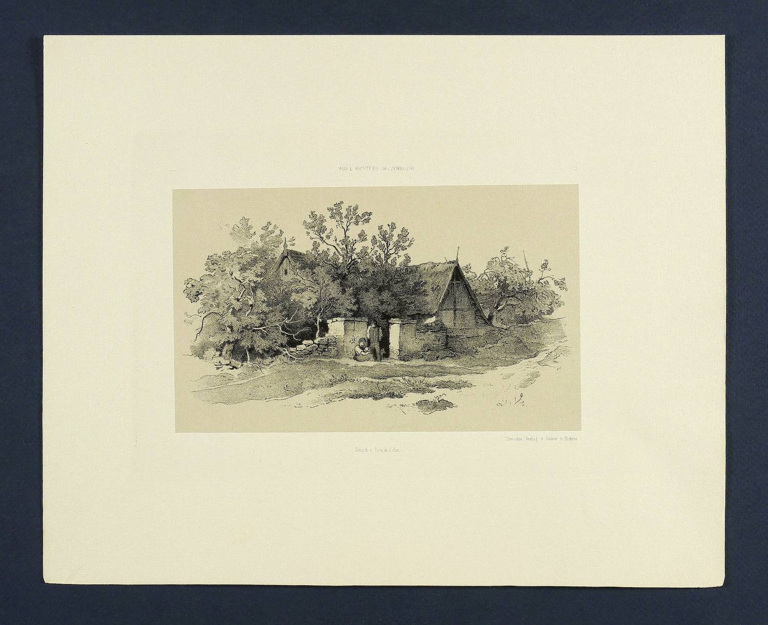 Hoff-Budde 3236. Hoff 3024. – Aus: Adrian Ludwig Richter, Aus Ludwig Richter's Skizzenbuch. Landschaftliche Studien und Staffagen, nach den Originalen auf Stein übertr. von Woldemar Rau (Dresden: Gaber & Richter 1857). – Oberhalb der Darstellung bezeichnet. Unterhalb Drucker- und Verlagsadressen. – Blatt Nr. 3 der Folge. – Sehr guter Zustand.