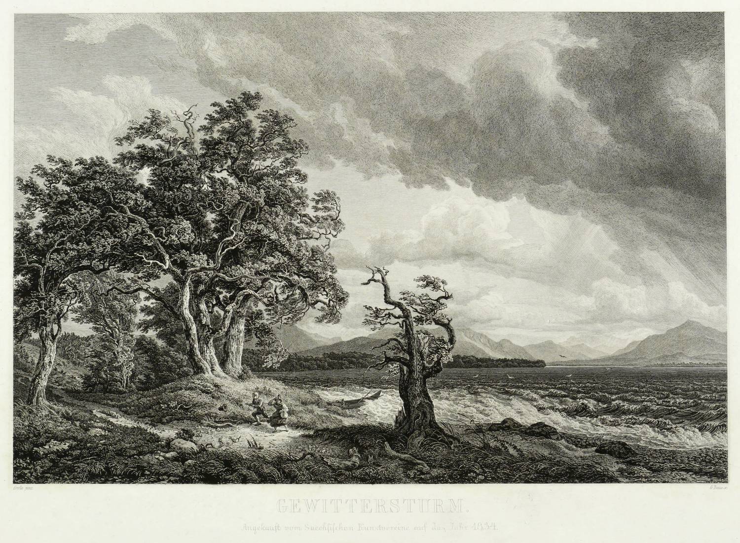Kovalevski B-C 134. – In der Platte links unten signiert: ″G. Busse sc.″ In der Mitte betitelt sowie bezeichnet: ″Angekauft vom Sächsischen Kunstvereine auf das Jahr 1834 ... ″ – Breitrandiges Blatt mit kleinem Einriss im linken Rand. Nur teilweise schwach fleckig. Insgesamt guter Erhaltungszustand.