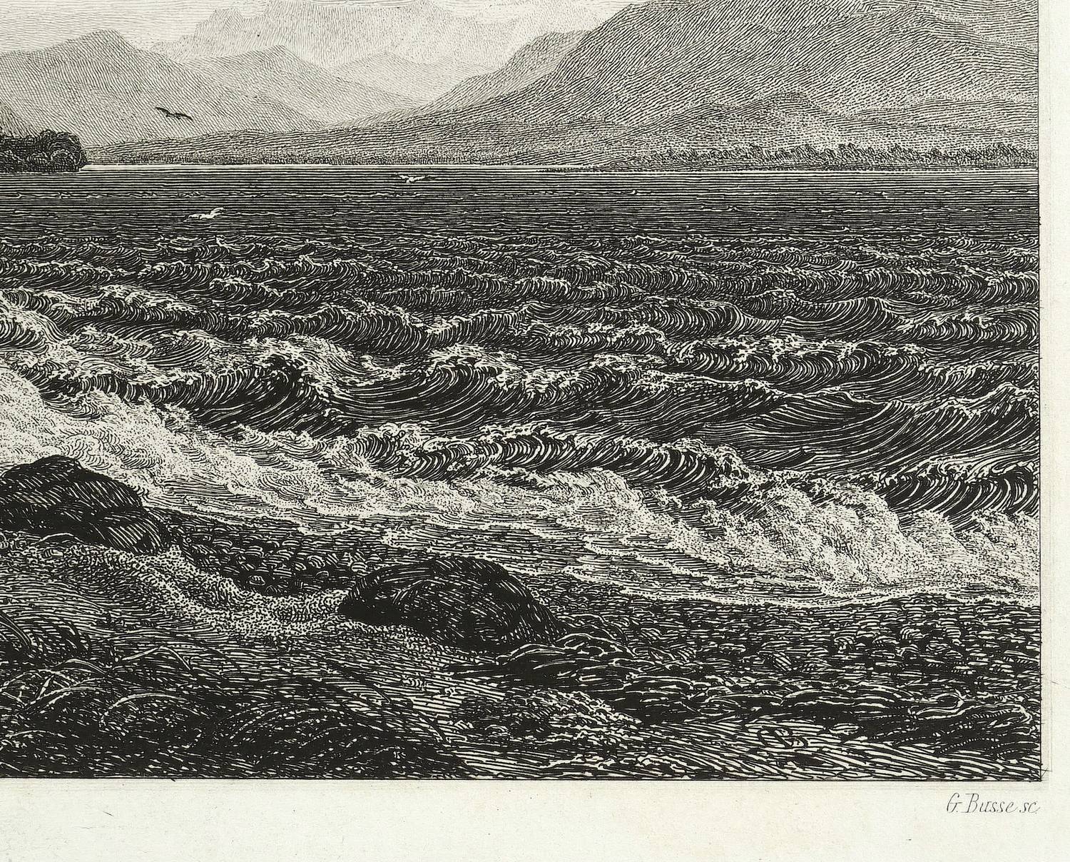 1834. Radierung / Strichätzung, in Schwarz, auf hellem Kupferdruck. – Originale Künstlergrafik, von Georg Heinrich Busse. – 22,1 x 33,3 cm (Darstellung), 28,2 x 37,7 cm (Platte), 34,0 x 53,5 cm (Blatt).