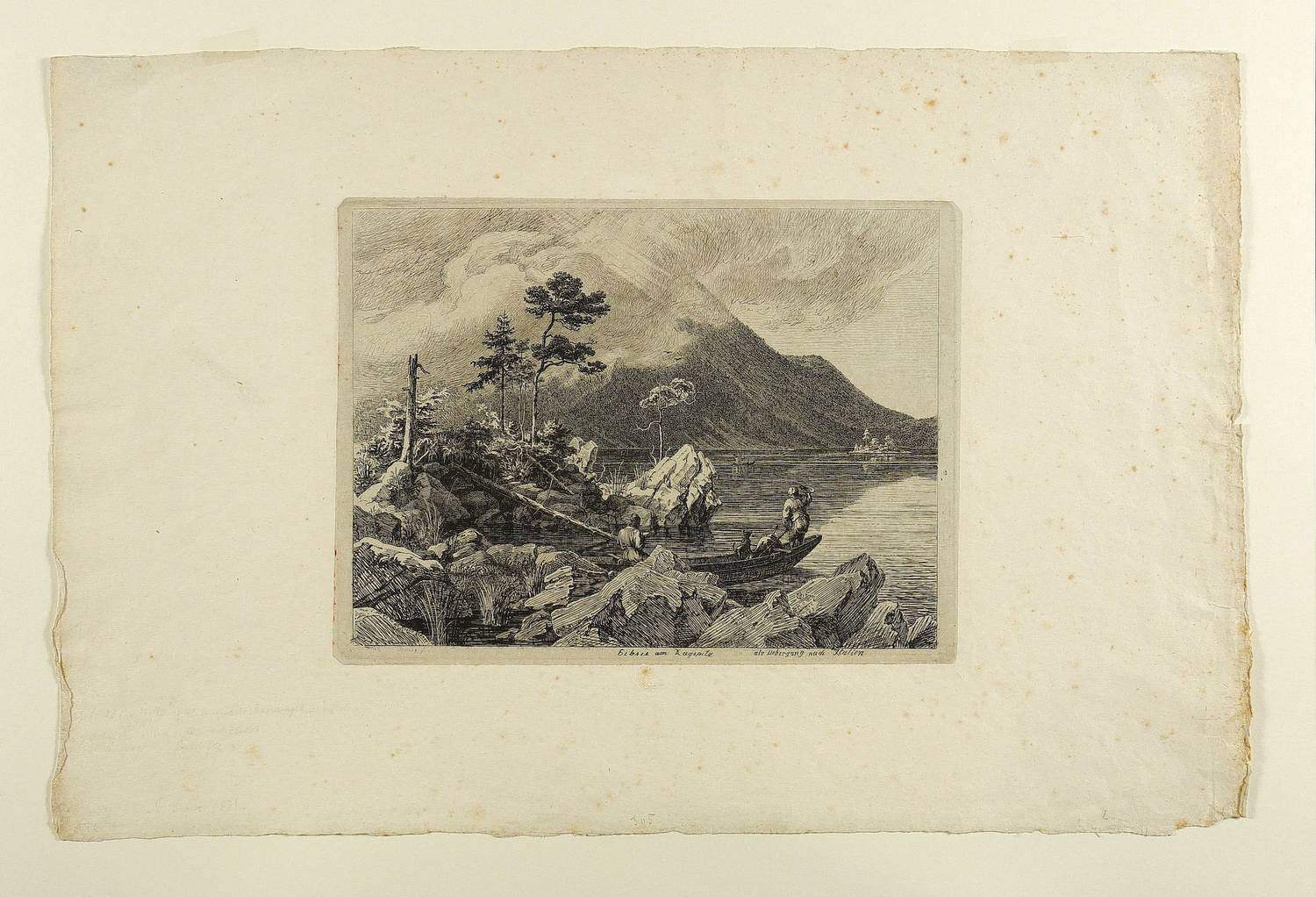 Andresen 23. – Im Stein vor dem Boot monogrammiert und datiert: ″CB. Roma Dec 1835″. In der Platte links unten signiert: ″Busse fec.″ Mittig betitelt. – Im breiten Rand leicht stockfleckig. Insgesamt aber guter unrestaurierter Zustand. Fachgerecht im Passepartout montiert.