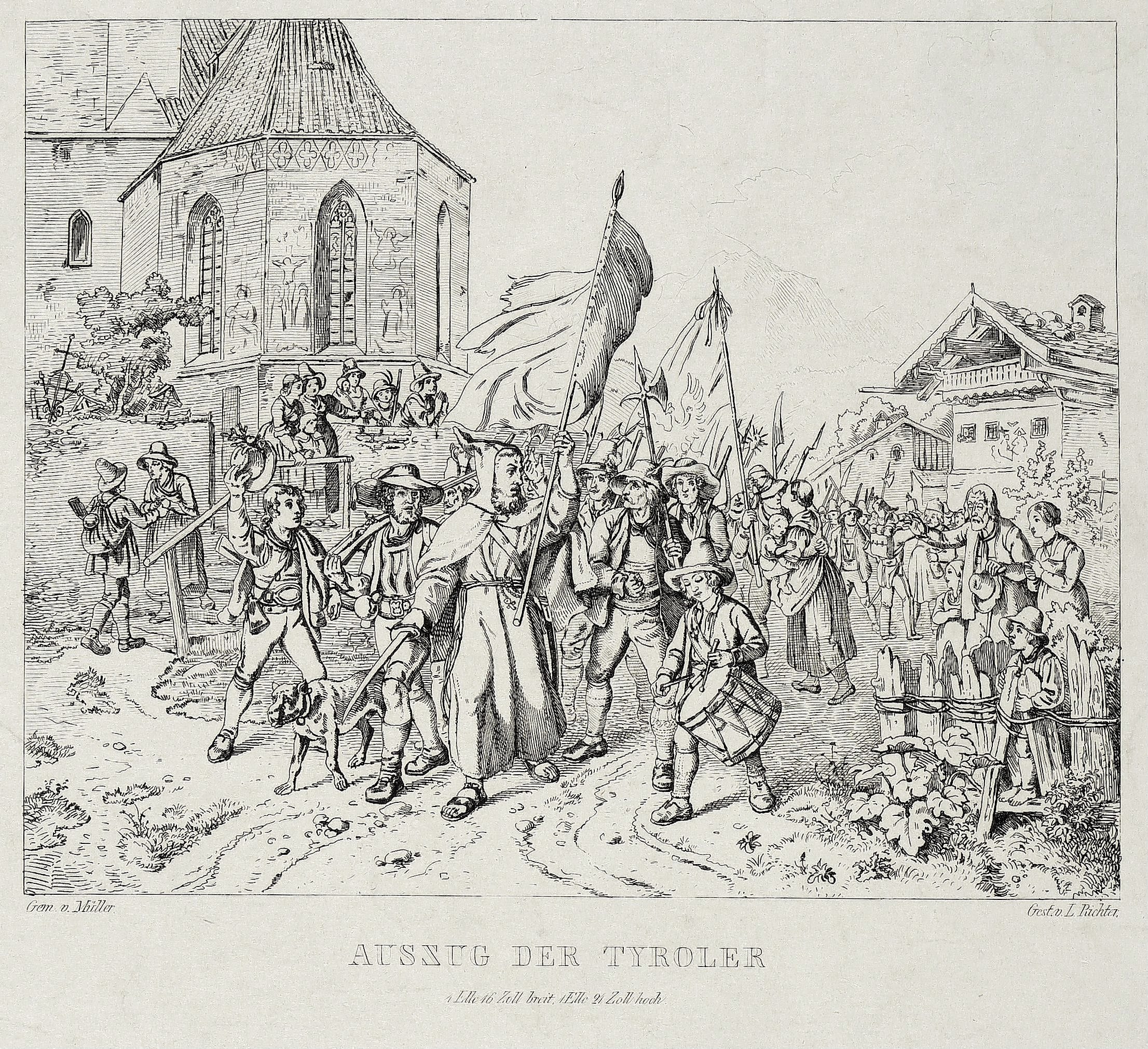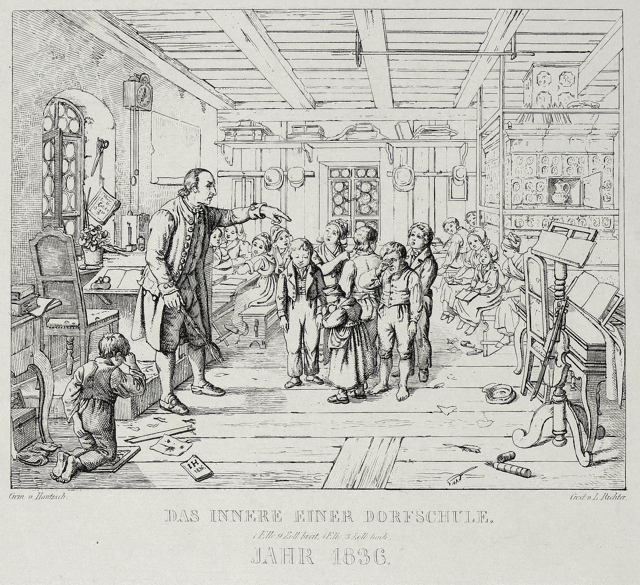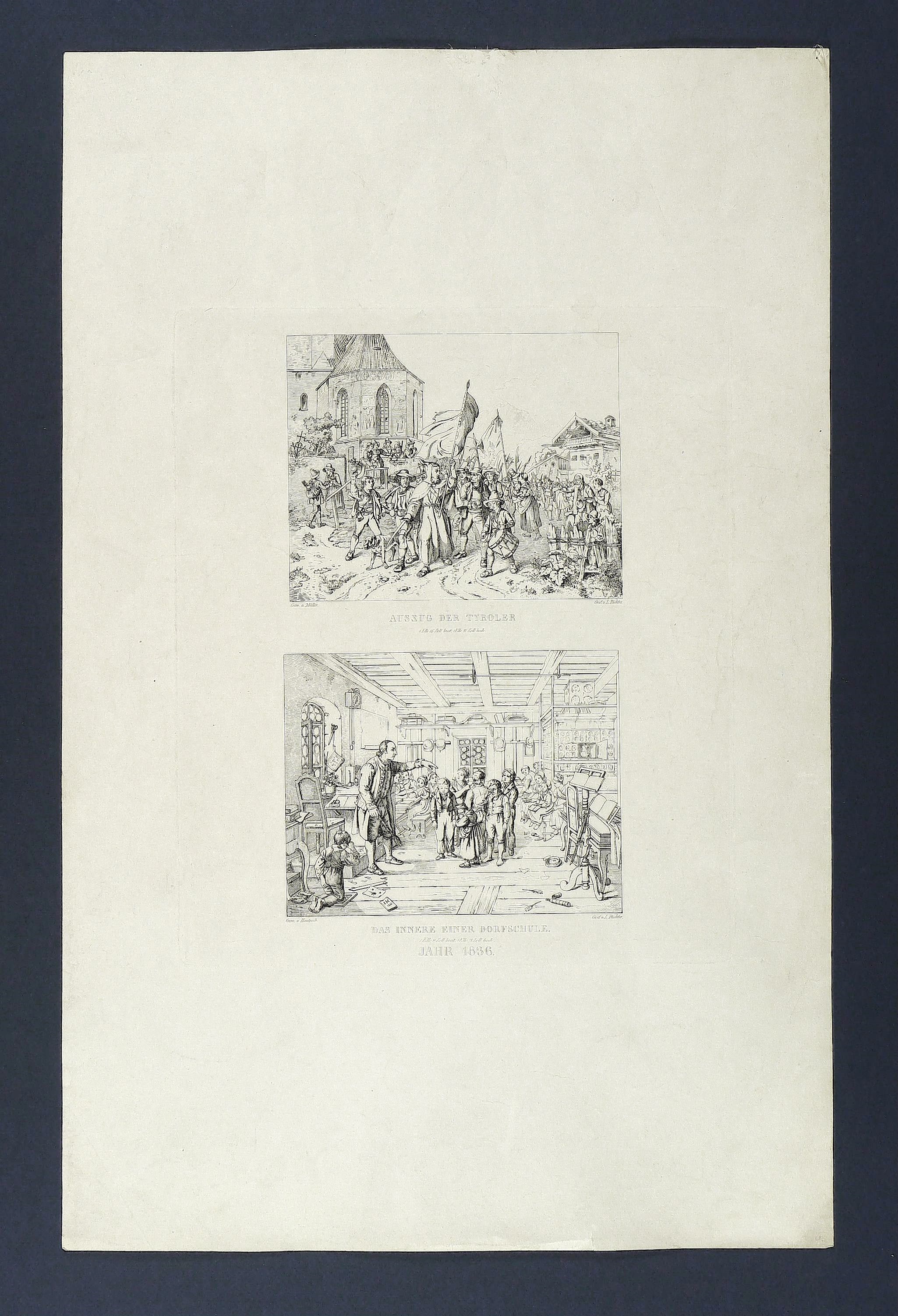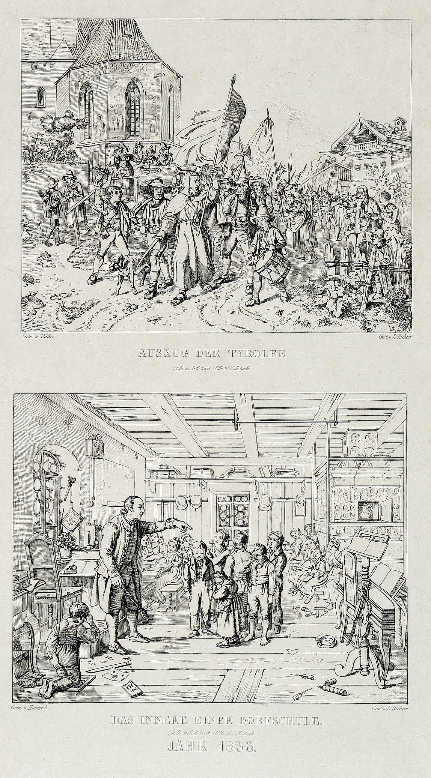 Richter, Adrian Ludwig. – „Auszug der Tyroler. Das Innere einer Dorfschule”.