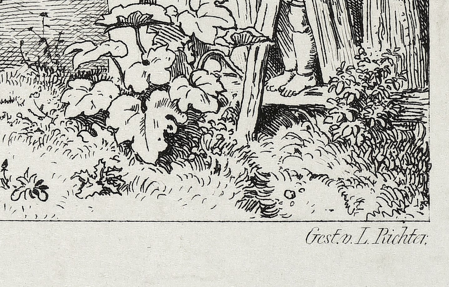 1836. Radierung / Strichätzung. – Originale Künstlergrafik, von Adrian Ludwig Richter. – 25,5 x 14,9 cm (Darstellung), 28,9 x 24,5 cm (Platte), 53 x 34 cm (Blatt).