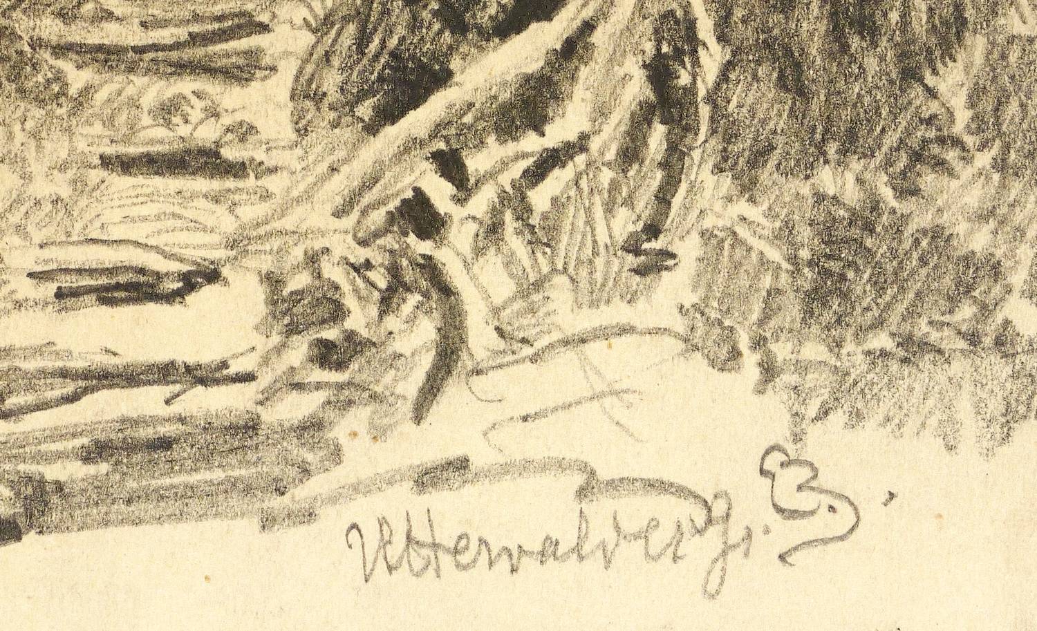Rechts unten in Bleistift monogrammiert und betitelt: ″Uttewalder Gr. / EZ.″ Verso Nachlass-Stempel Emil Zeising. – Wohl vom Künstler noch vor dem Zeichnen hinterlegtes Loch. Verso Reste von Papiergelenken einer ehemaligen Montierung. Insgesamt gut erhalten.