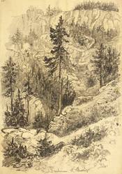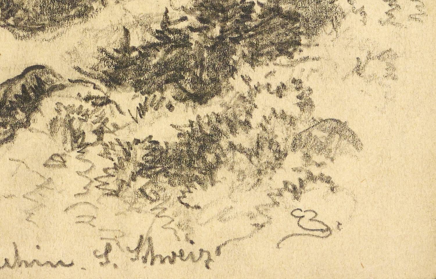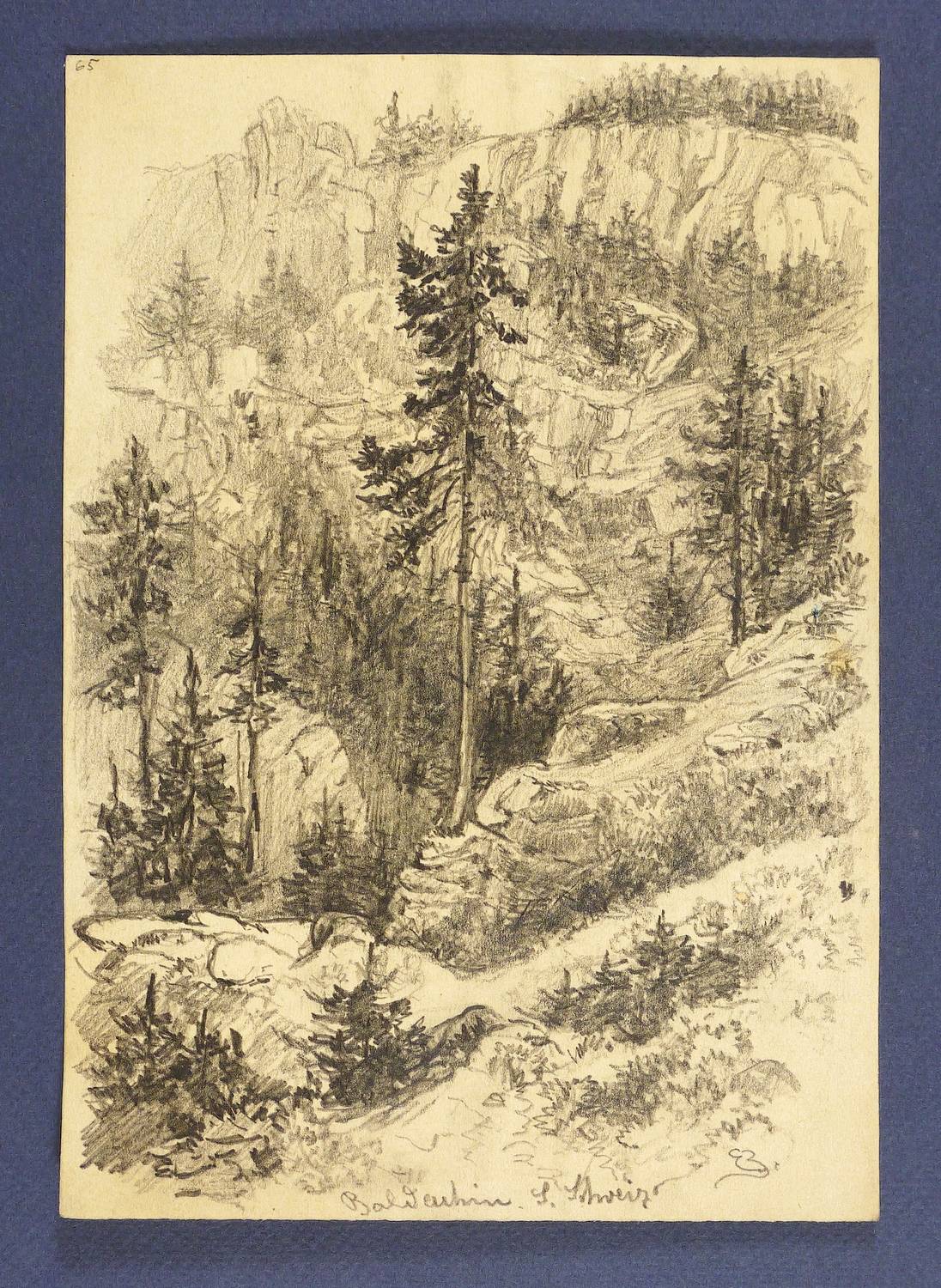 Rechts unten in Bleistift monogrammiert sowie mittig betitelt: ″Baldachin. S. Schweiz″. Verso Nachlass-Stempel Emil Zeising. – Verso Reste von Papiergelenken einer ehemaligen Montierung. Insgesamt gut erhalten.
