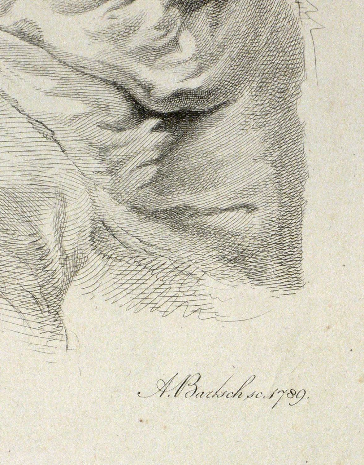 1789. Mischtechnik / Kupferstich & Radierung, in Schwarz, auf Bütten. – Originale Künstlergrafik, von Adam von Bartsch. – 29,5 x 25,0 cm (Darstellung), 33,8 x 26,9 cm (Platte), 36 x 28 cm (Blatt).