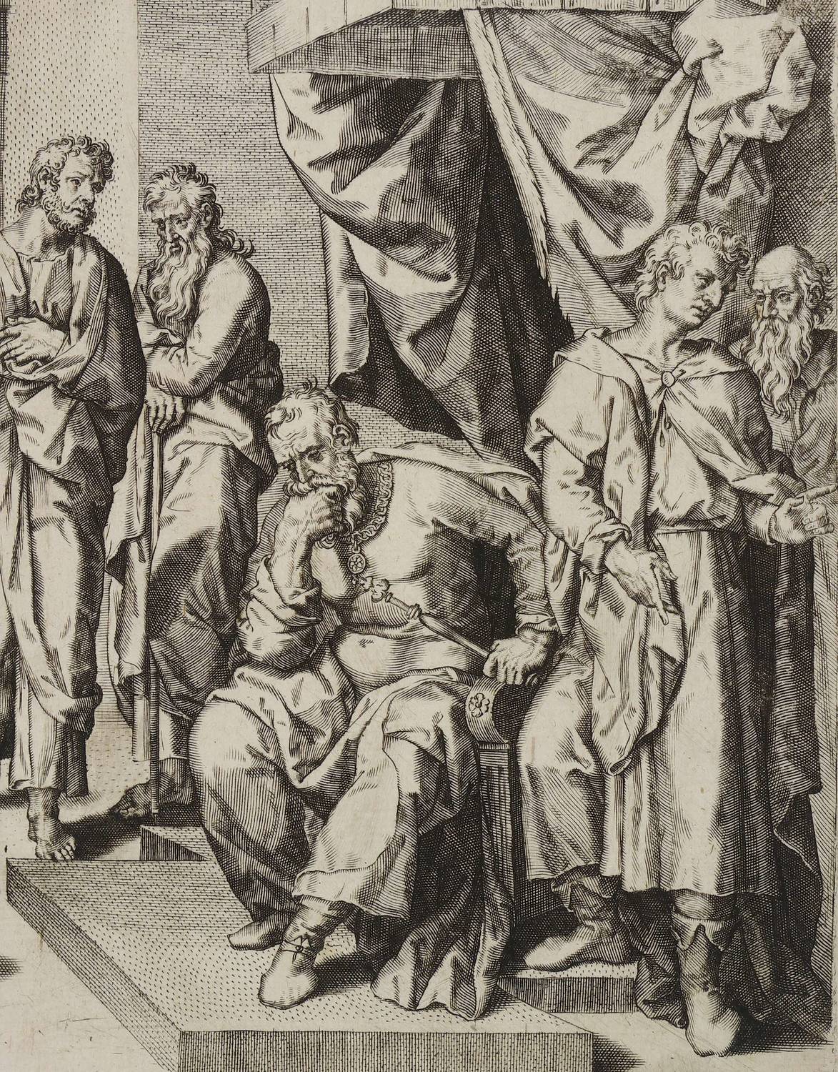 Um 1590. Kupferstich / Linienstich. – Originale Künstlergrafik, von Flämisch (16. Jh.). – 21,3 x 28,1 cm (Darstellung / Platte), 26,5 x 31,0 cm (Blatt).