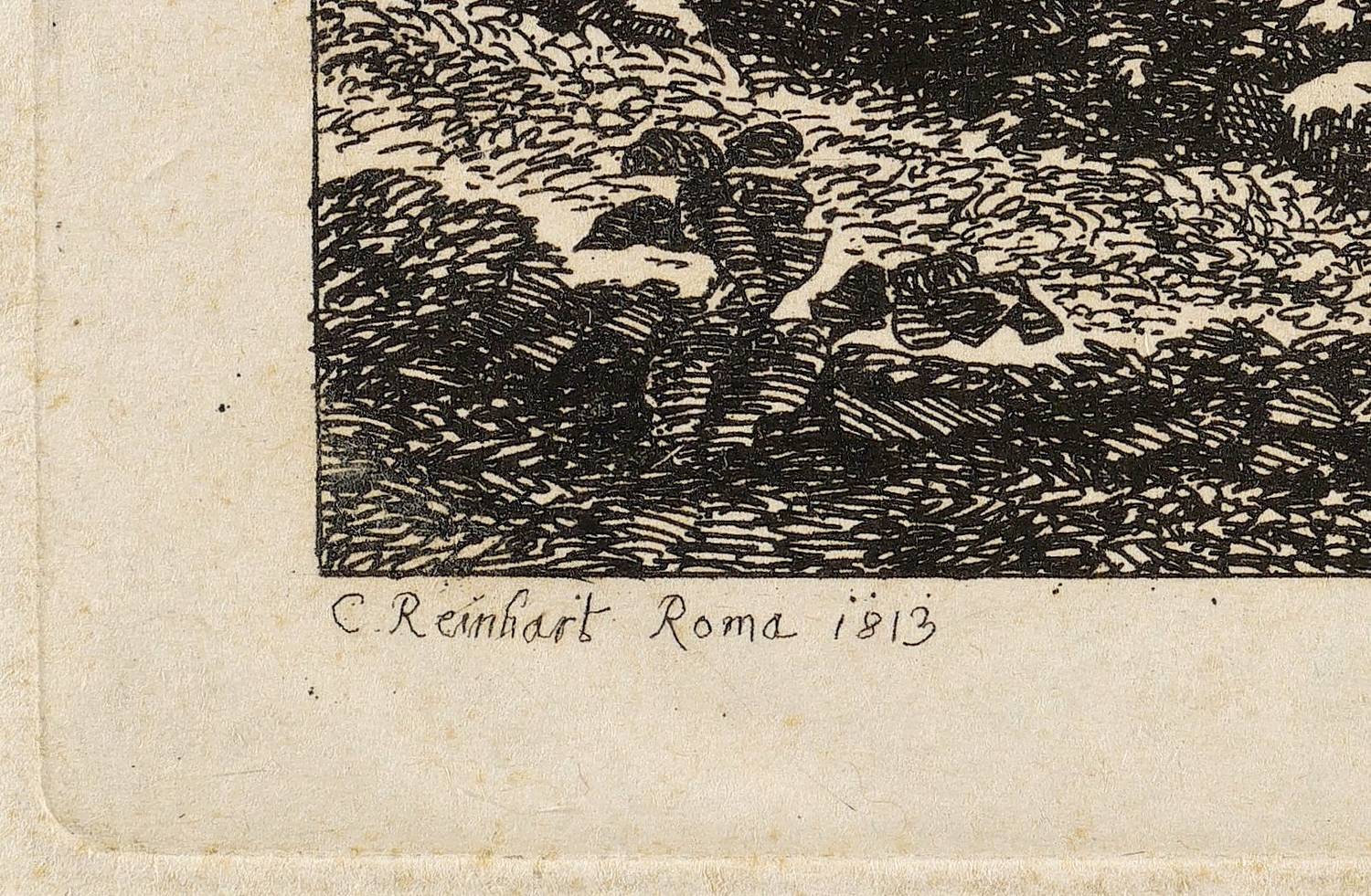 Feuchtmayr 127. – Links unterhalb der Darstellung signiert: ″C. Reinhart Roma 1813″. – Blatt schwach gebräunt und im Randbereich knickspurig. Verso Reste vormaliger Montierung. Insgesamt aber guter unrestaurierter Zustand.