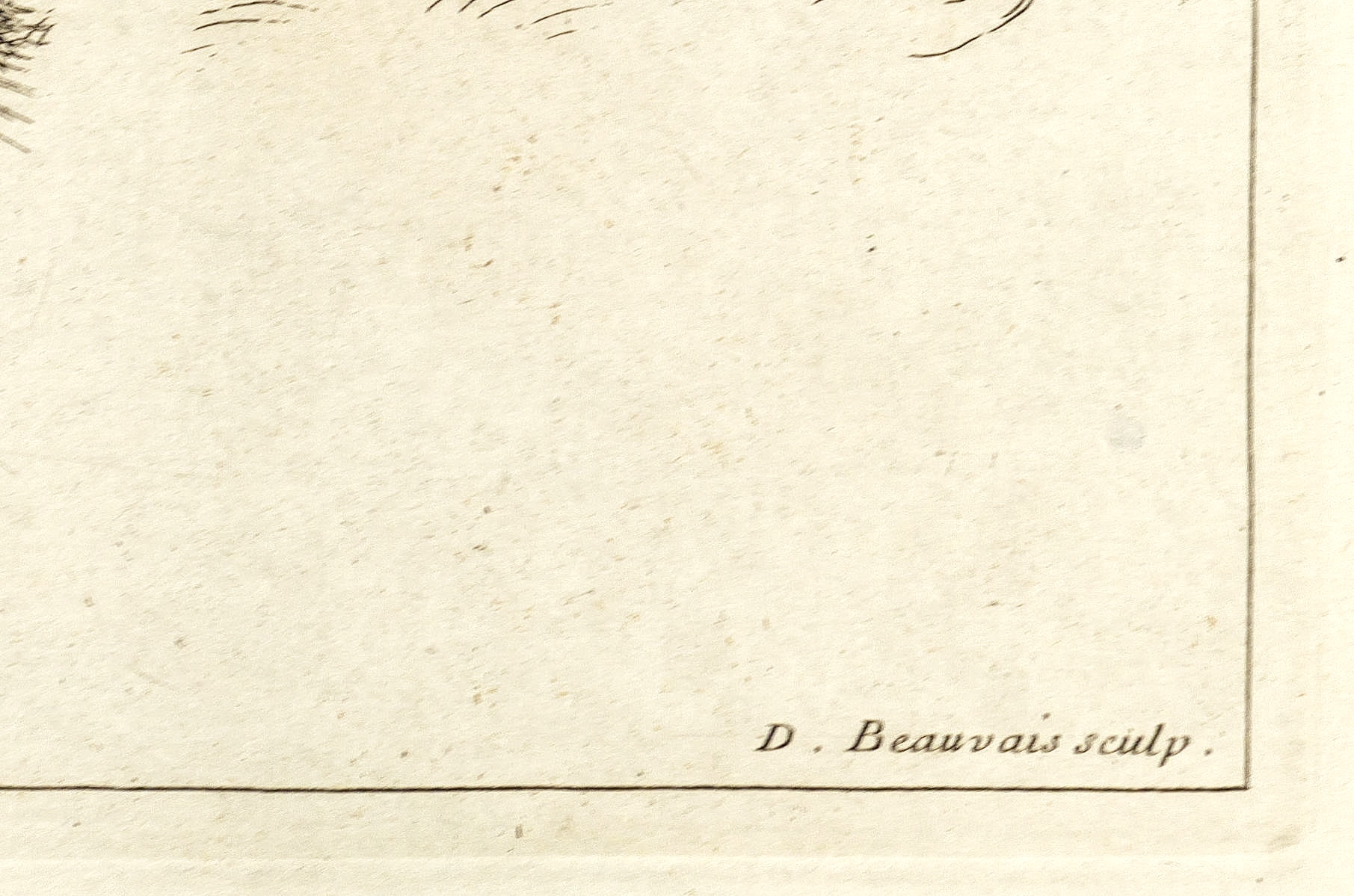 Nicolas-Dauphin de Beauvais (1687 Paris - 1763 Paris). Französischer Kupferstecher. Schüler von Jean Audran, später von Gaspard Duchange, dessen Tochter er heiratet. Lieferte Platten u.a. für die "School of Raphael" von Dorigny (1782 London), die Sammlung Crozat und das Dresdner Galeriewerk.
