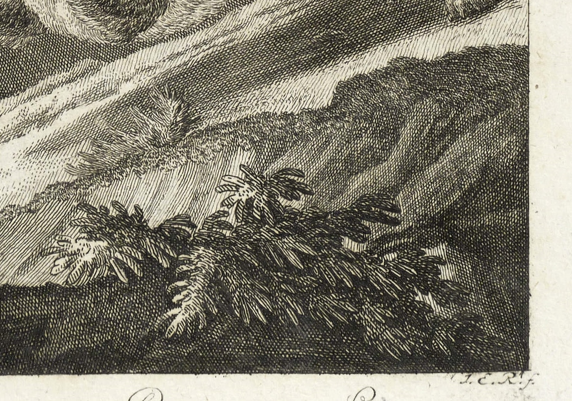 1738. Radierung / Strichätzung, in Schwarz, auf grobem Büttenpapier. – Historische Buchillustration, von Johann Elias Ridinger. – 16,2 x 13,5 cm (Darstellung), 18,9 x 15,1 cm (Platte), 36 x 24 cm (Blatt).
