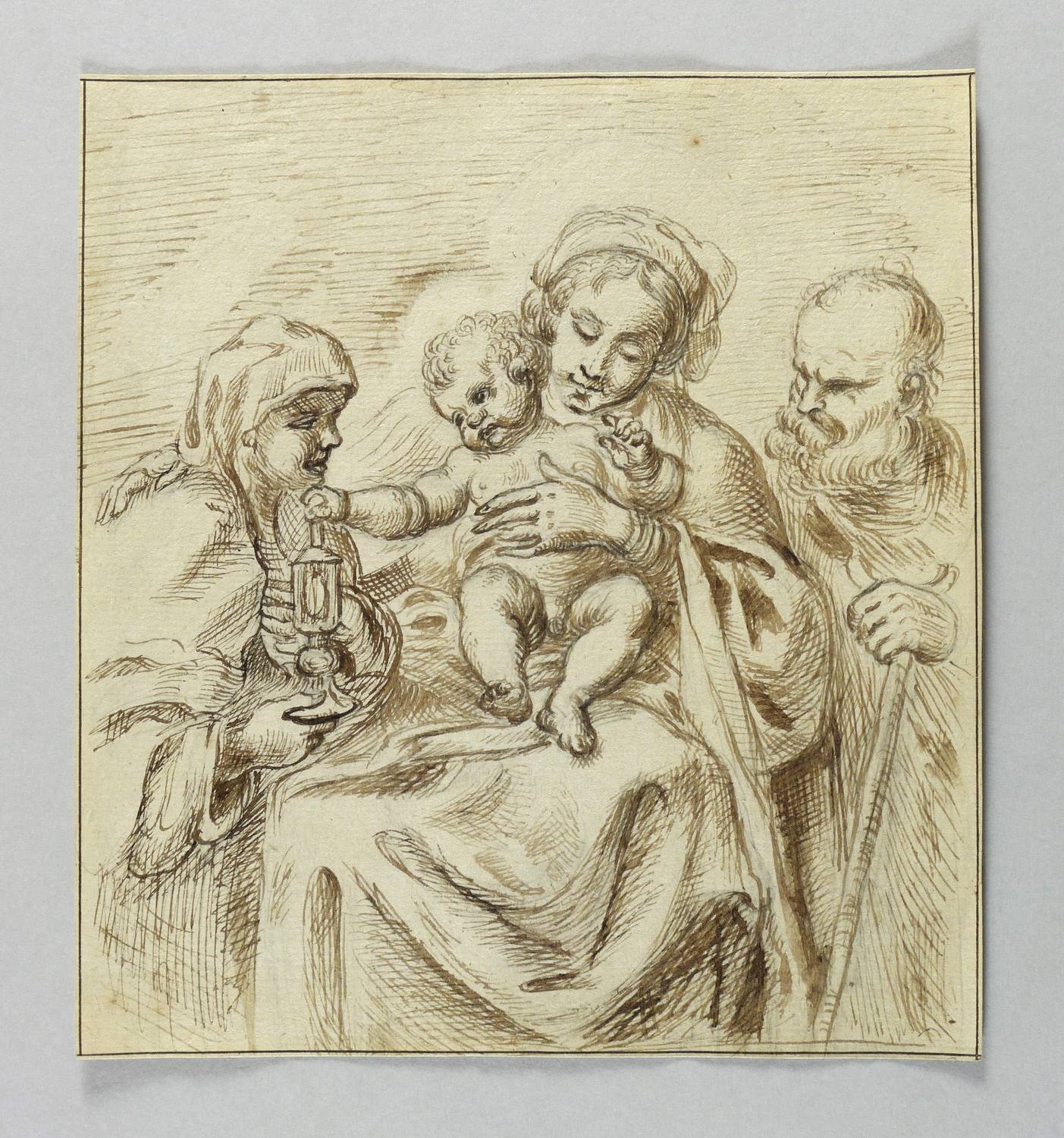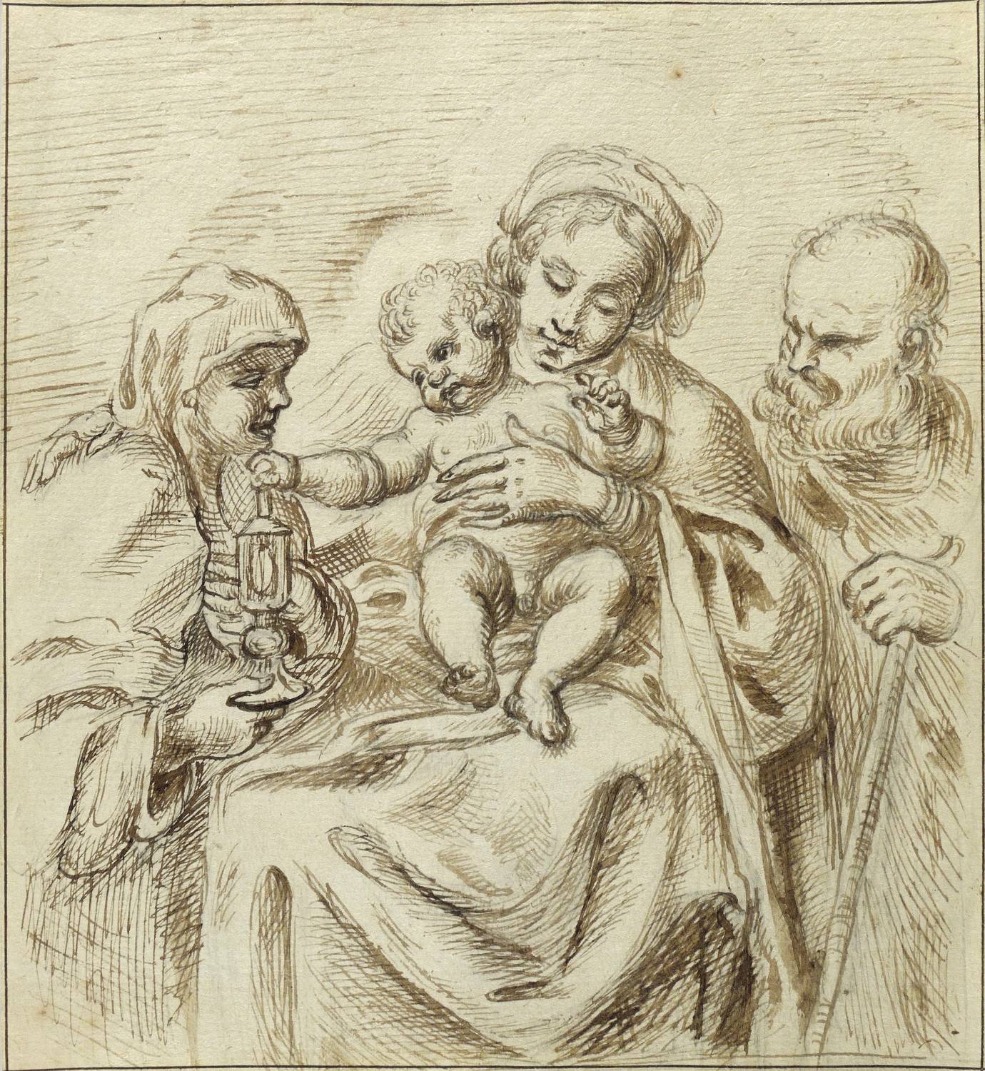 Deutscher Zeichner. – „Heilige Familie und Heilige mit Öllampe”.