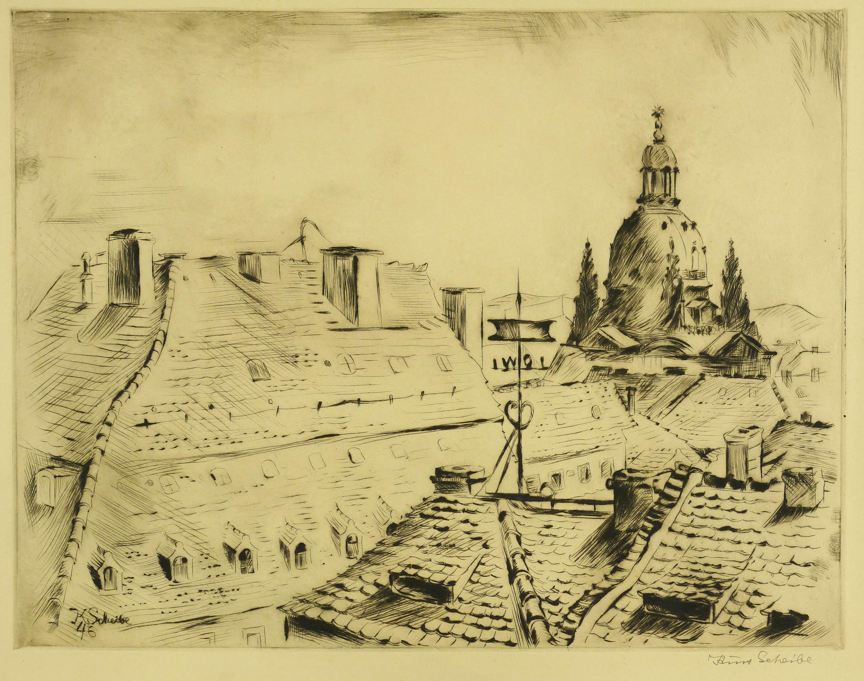 Scheibe, Kurt. – „Blick über die Dächer zur Frauenkirche”.
