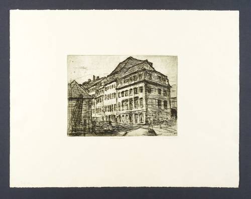 1981/1984. Radierung / Strichätzung, mit Plattenton, in Schwarz, auf Hahnemühle-Bütten. – Originale Künstlergrafik, von Bernhard Koban. – Probedruck. – 18,9 x 25,4 cm (Darstellung / Platte), 41 x 53 cm (Blatt).