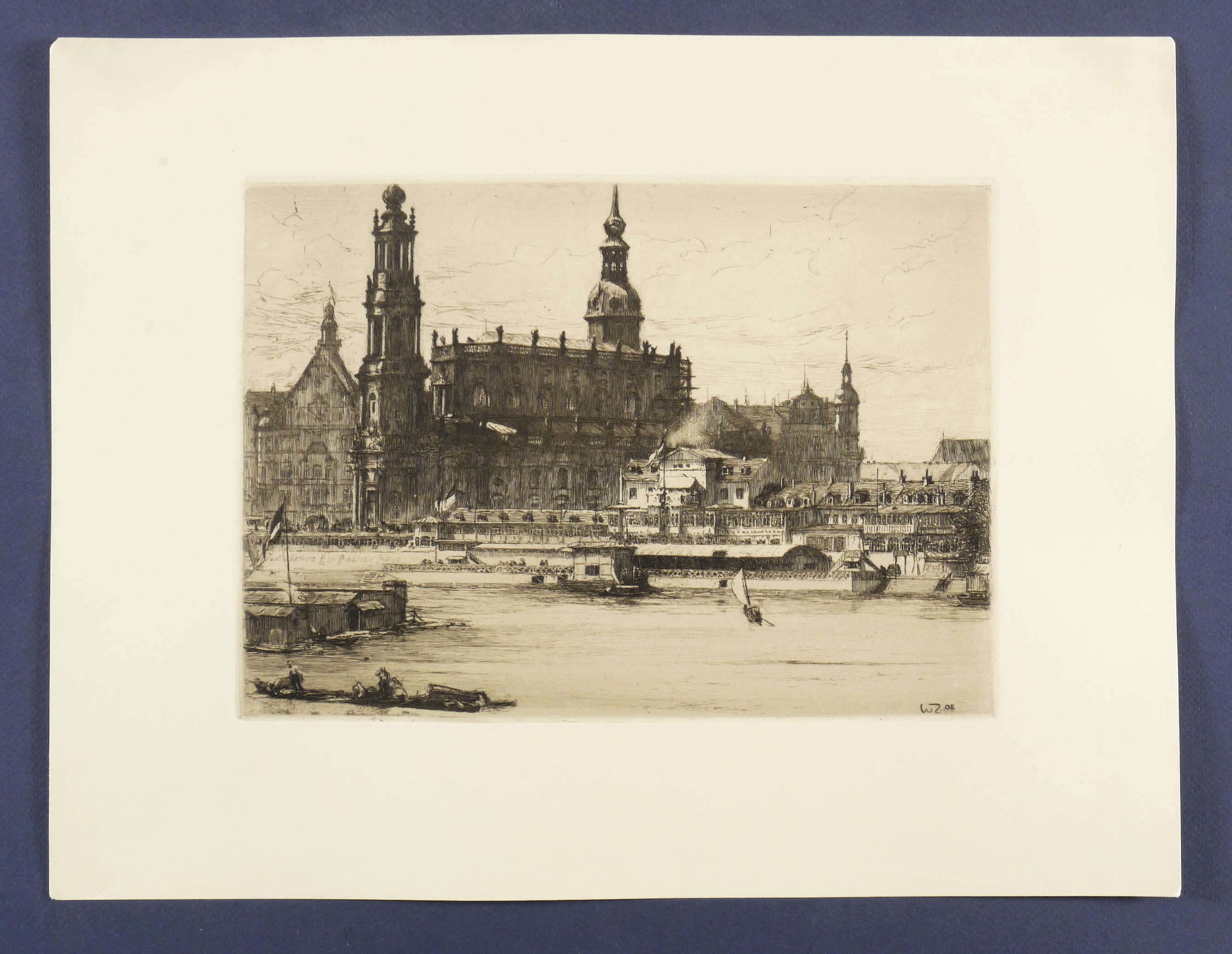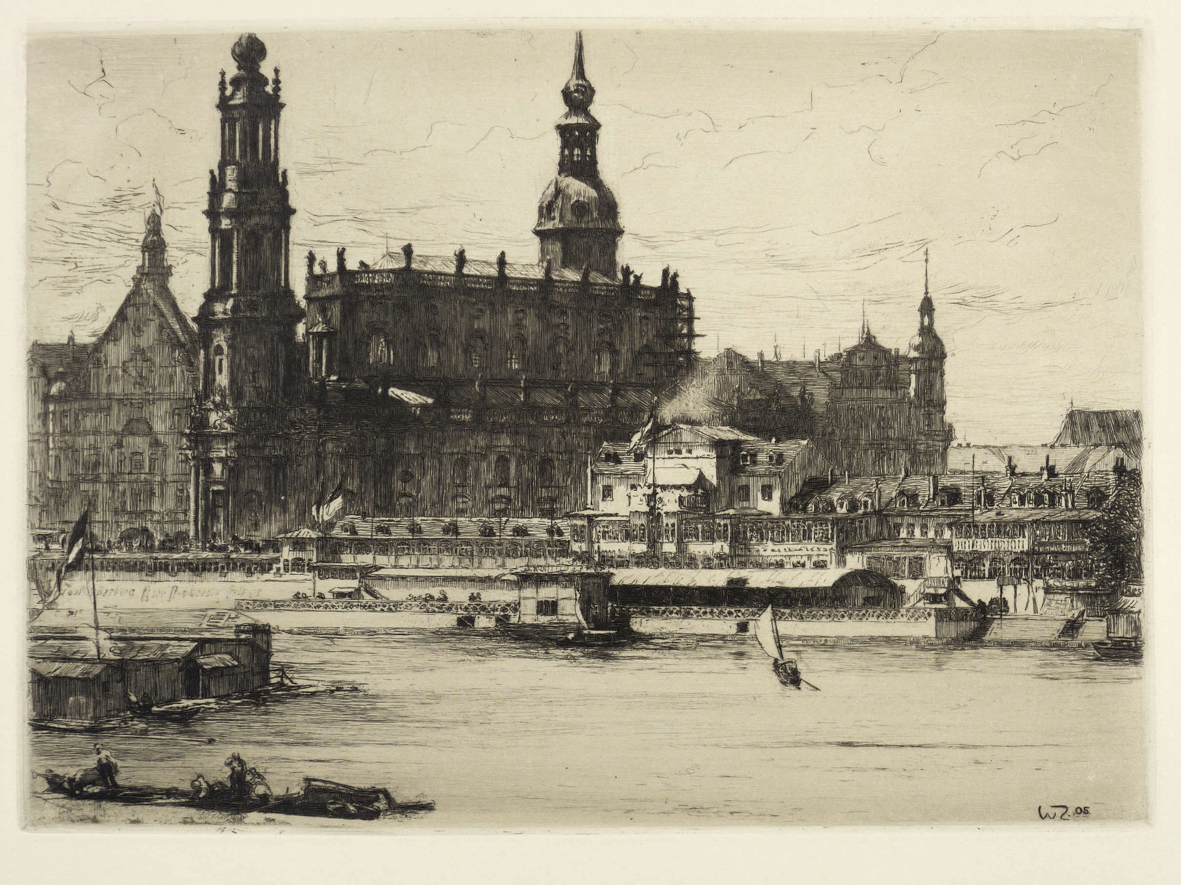 Richter 12. – Aus: Walter Zeising, Dresdner Ansichten. Radiert von Walter Zeising (Dresden: Sächsischer Kunstverein 1906). – In der Platte rechts unten monogrammiert und datiert: ″WZ 05″. – Kupferdruck bei Giesecke & Devrient, Leipzig. – Sehr gut erhaltenes Exemplar.