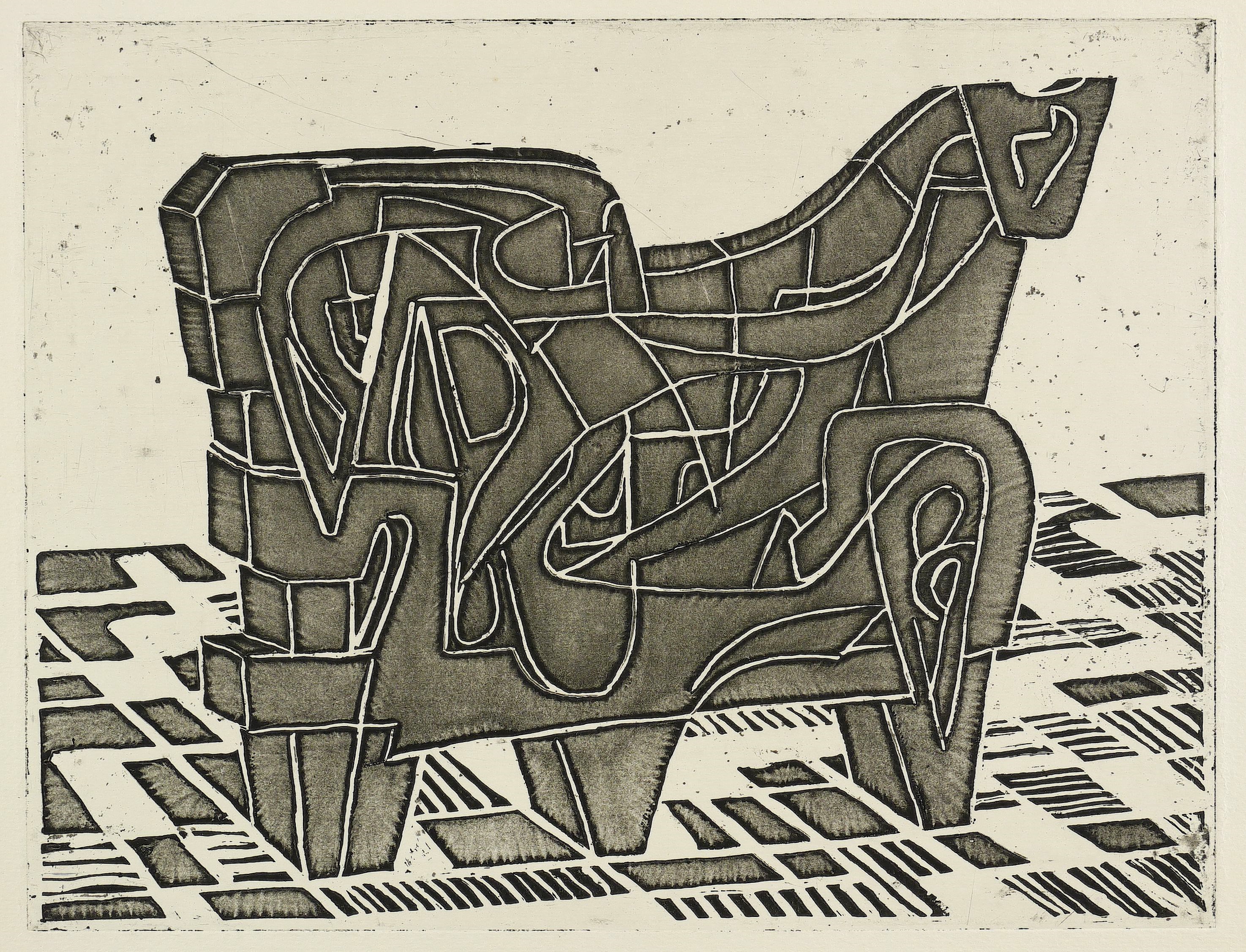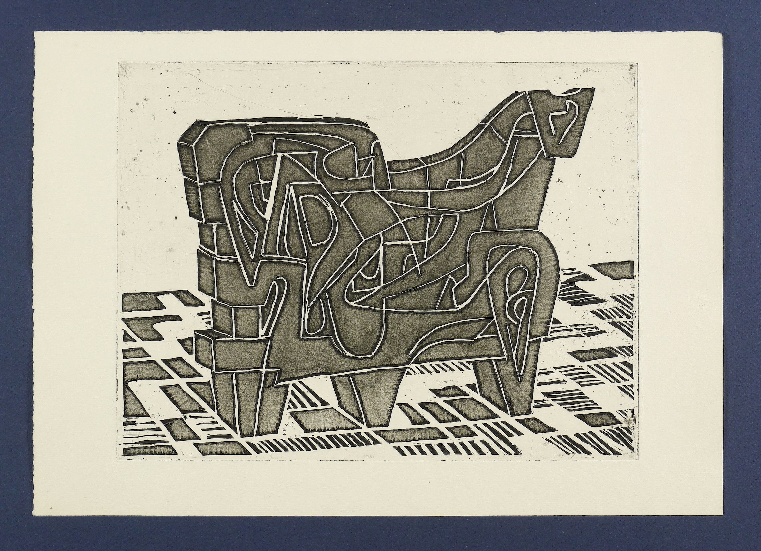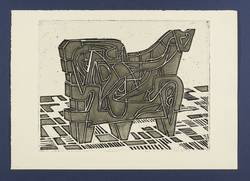 Um 1955. Radierung / Strichätzung & Aquatinta, in Schwarz, auf hellgelbem Velin. – Originale Künstlergrafik, von Max Lachnit. – 24,8 x 32,3 cm (Darstellung / Platte), 30 x 43 cm (Blatt).