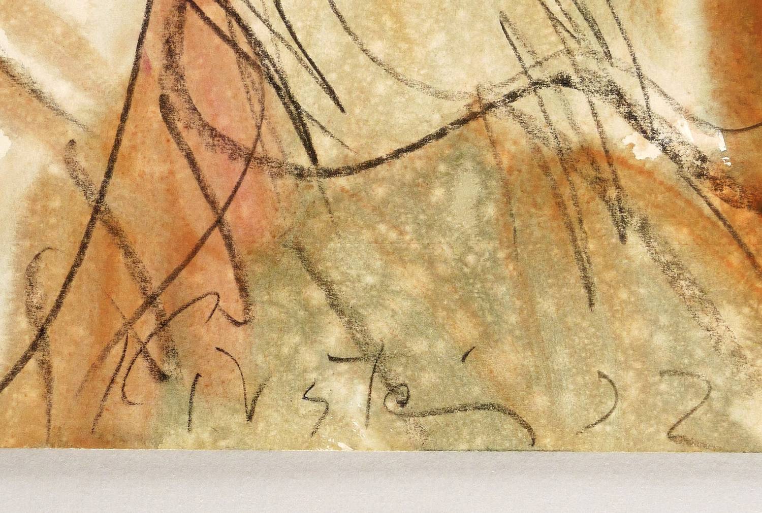 1972. Aquarell, über schwarzer Kreide, auf hellchamois Velinkarton. – Originale Künstlergrafik, von Helmut Schmidt-Kirstein. – Unikat. – 37,5 x 50,0 cm (Darstellung / Blatt).