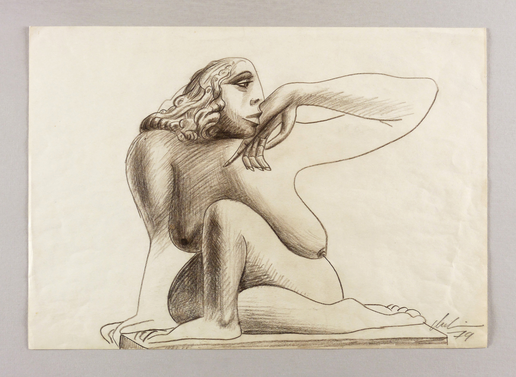 Rechts unten in Bleistift signiert und datiert: ″Makolies 79″. – Studie und Vorzeichnung zu der Radierung ″Kauernder Akt″ von 1981. - Verso weitere Skizze zu diesem Motiv. – Geringe Atelier- bzw. Lagerspuren. Insgesamt guter Zustand.