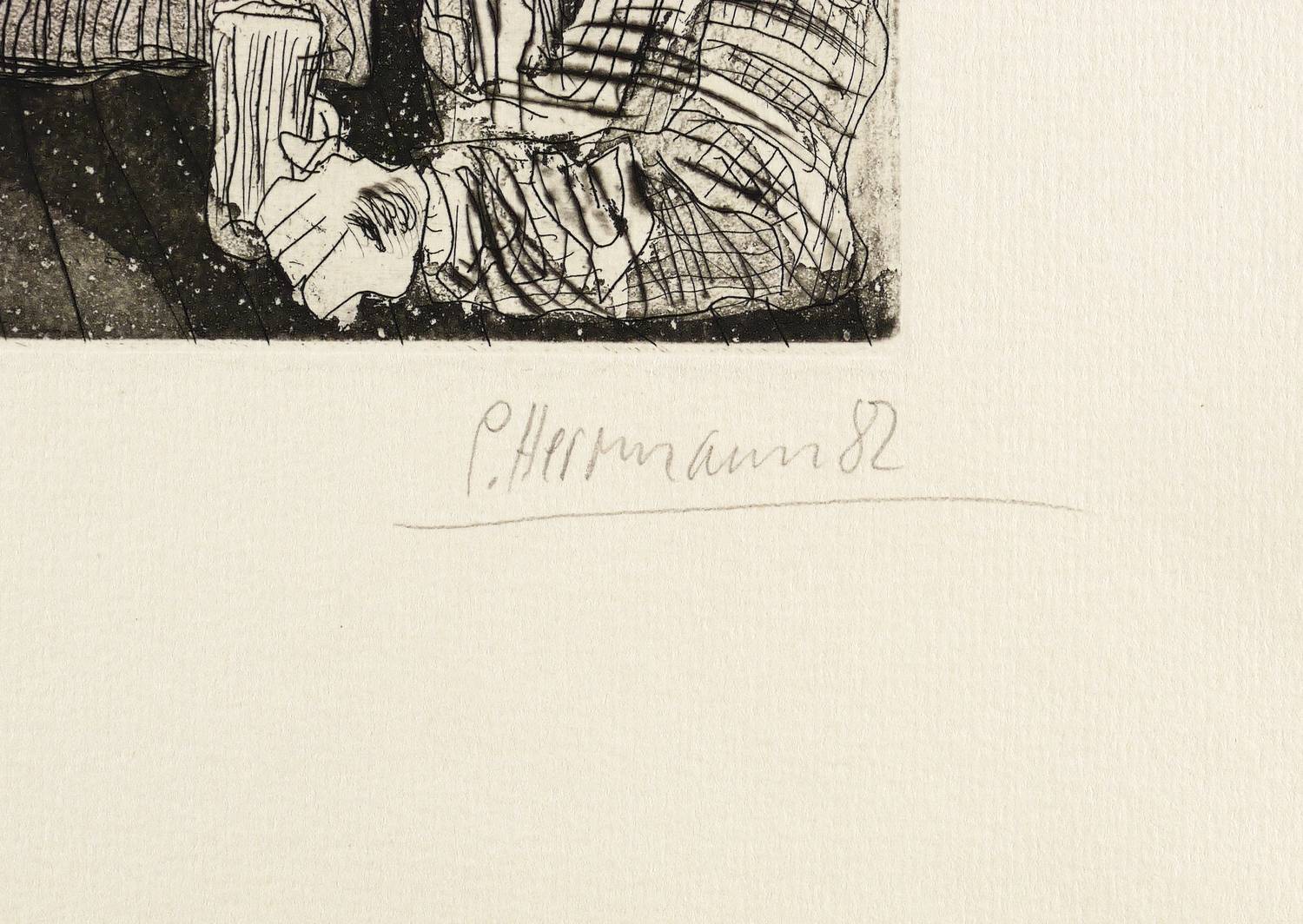 Rechts unten in Bleistift signiert und datiert: ″P. Herrmann 82″. Links Auflagenbezeichnung. Trockenstempel der Grafik-Edition. – Sehr gut erhalten.