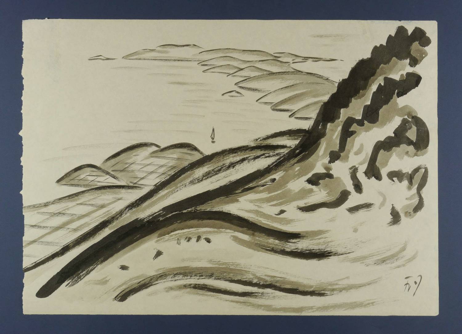 Rechts unten signiert ″Fr Z″. – Papier leicht gebräunt. Im Blattrand zwei fachgerecht restaurierte Einrisse und originale Reißzwecklöchlein. Insgesamt gut erhalten.