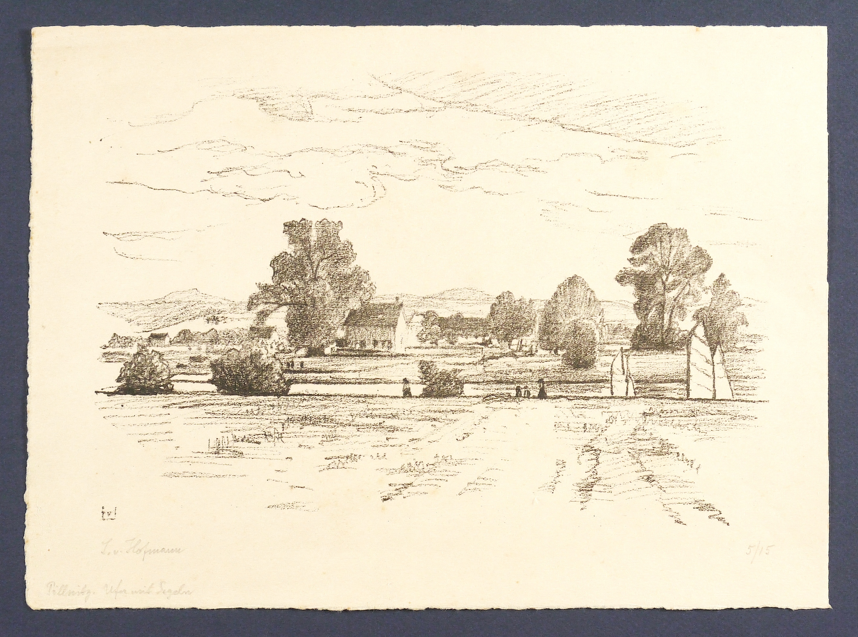 Hofmann, Ludwig von. – „Pillnitz. Ufer mit Segeln (Elbsegler)”.