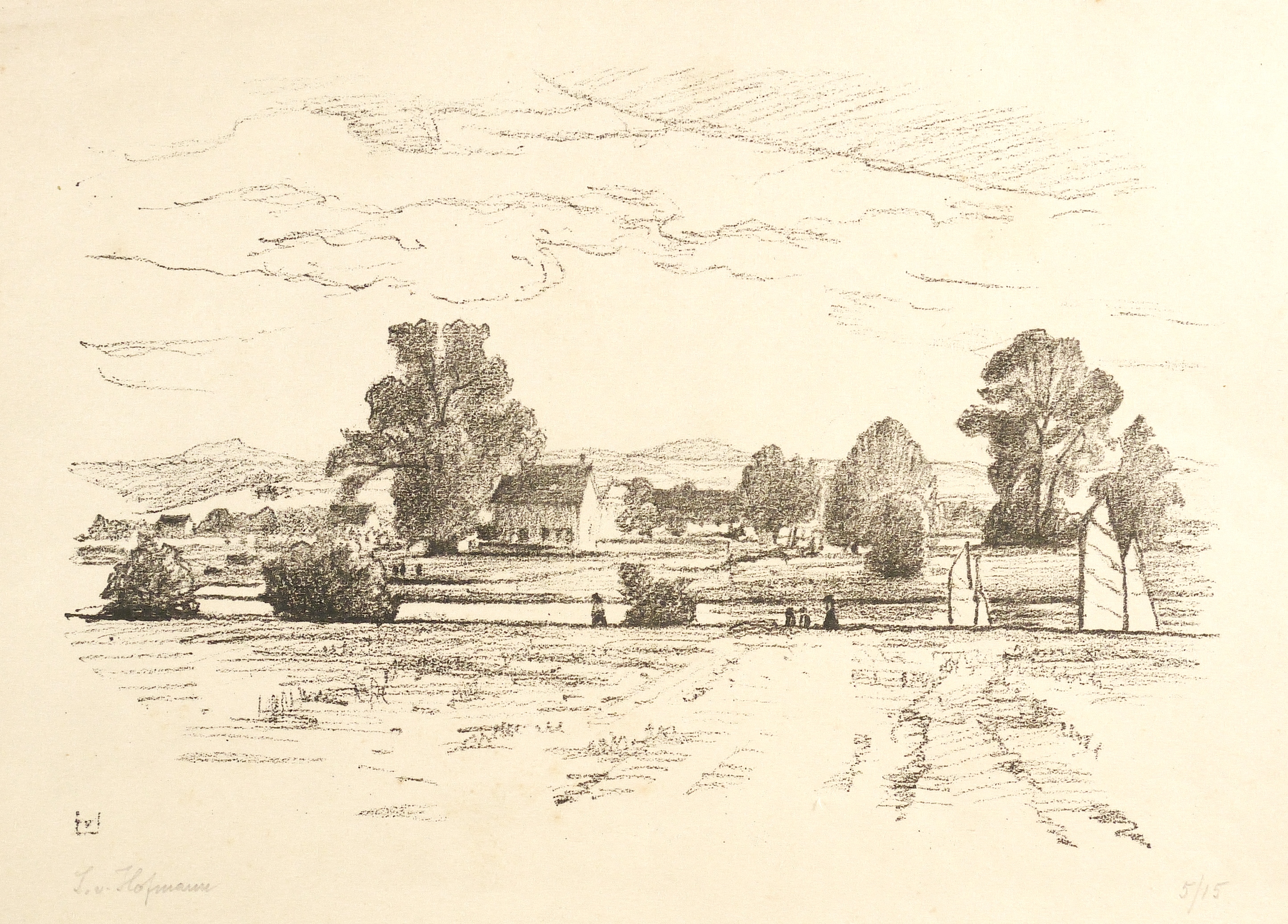 Um 1910. Lithografie / Kreidelithografie, in Schwarz, auf festem gelblichem Japan. – Originale Künstlergrafik, von Ludwig von Hofmann. – Auflage Exemplar Nr. 5/15. – 17,7 x 27,0 cm (Darstellung / Stein), 24 x 32 cm (Blatt).