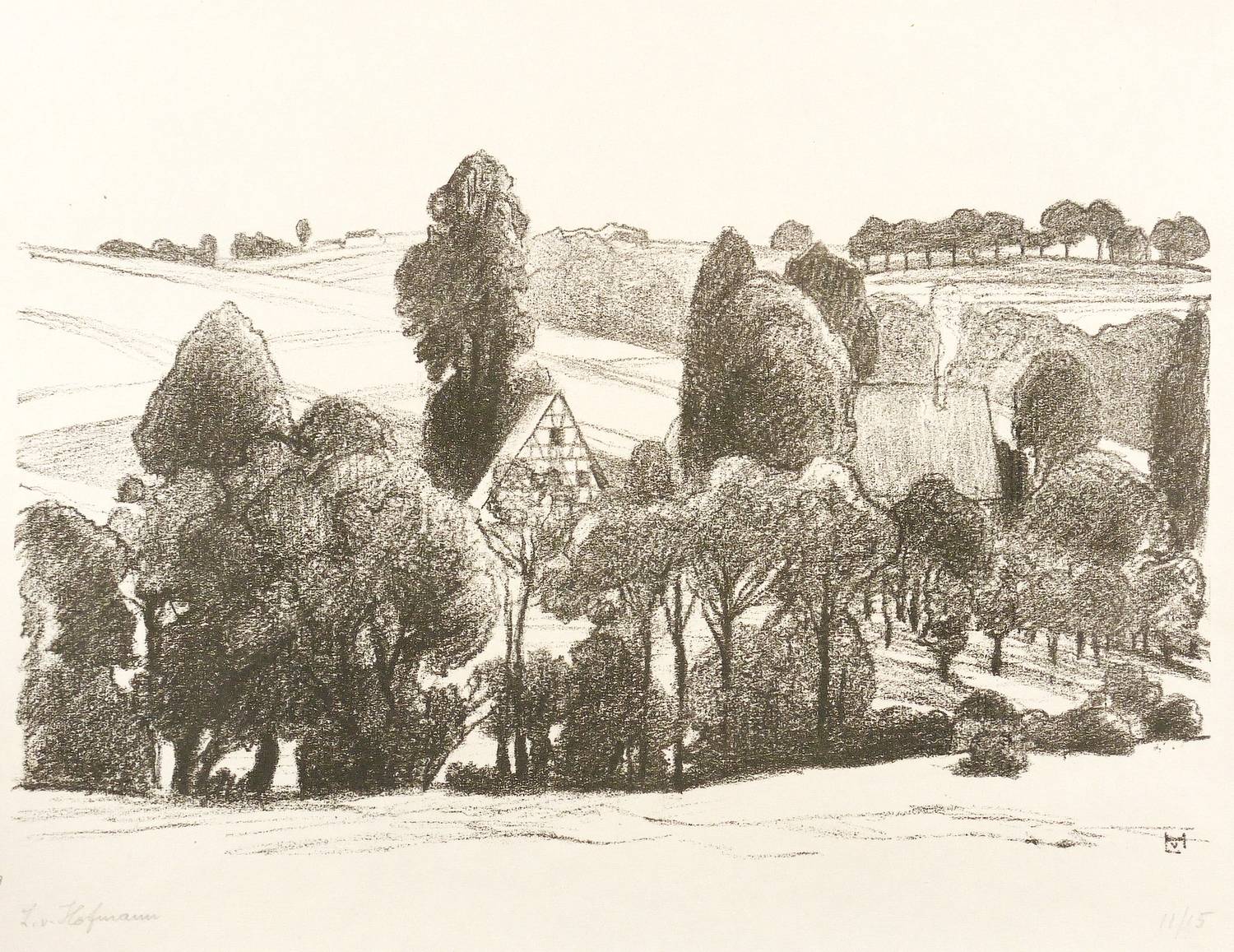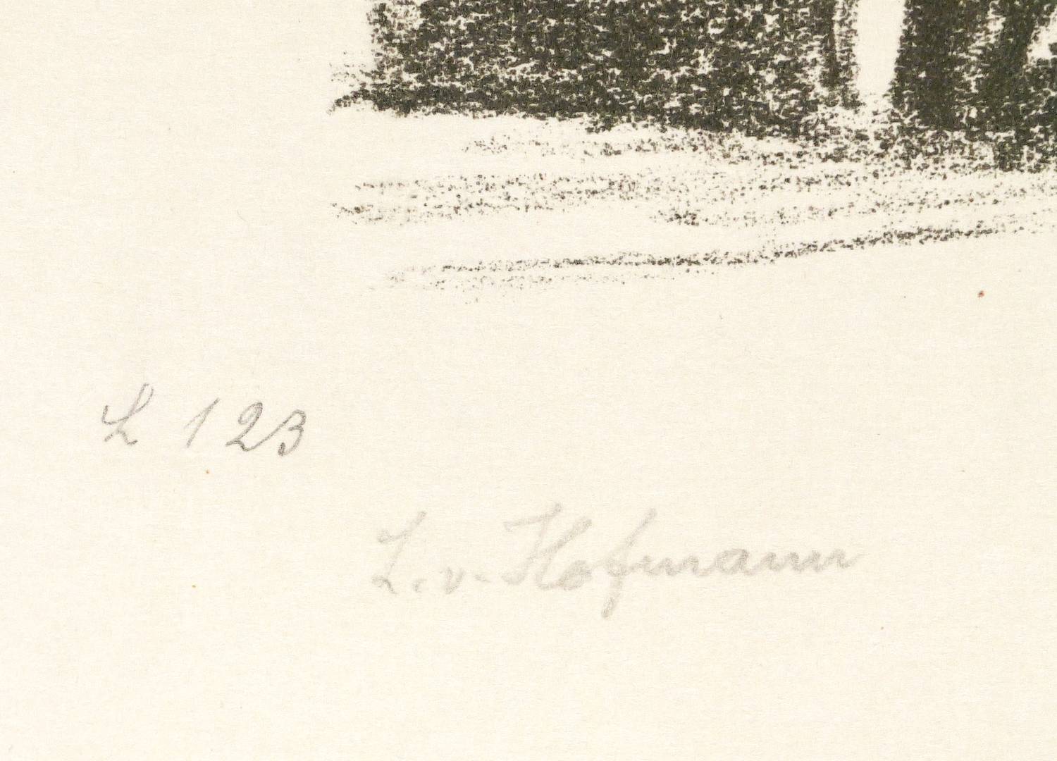 1932. Lithografie / Kreidelithografie, in Schwarz, auf cremefarbenem Büttenpapier. – Originale Künstlergrafik, von Ludwig von Hofmann. – Auflage Exemplar Nr. 11/15. – 20,0 x 33,5 cm (Darstellung / Stein), 23 x 42 cm (Blatt).