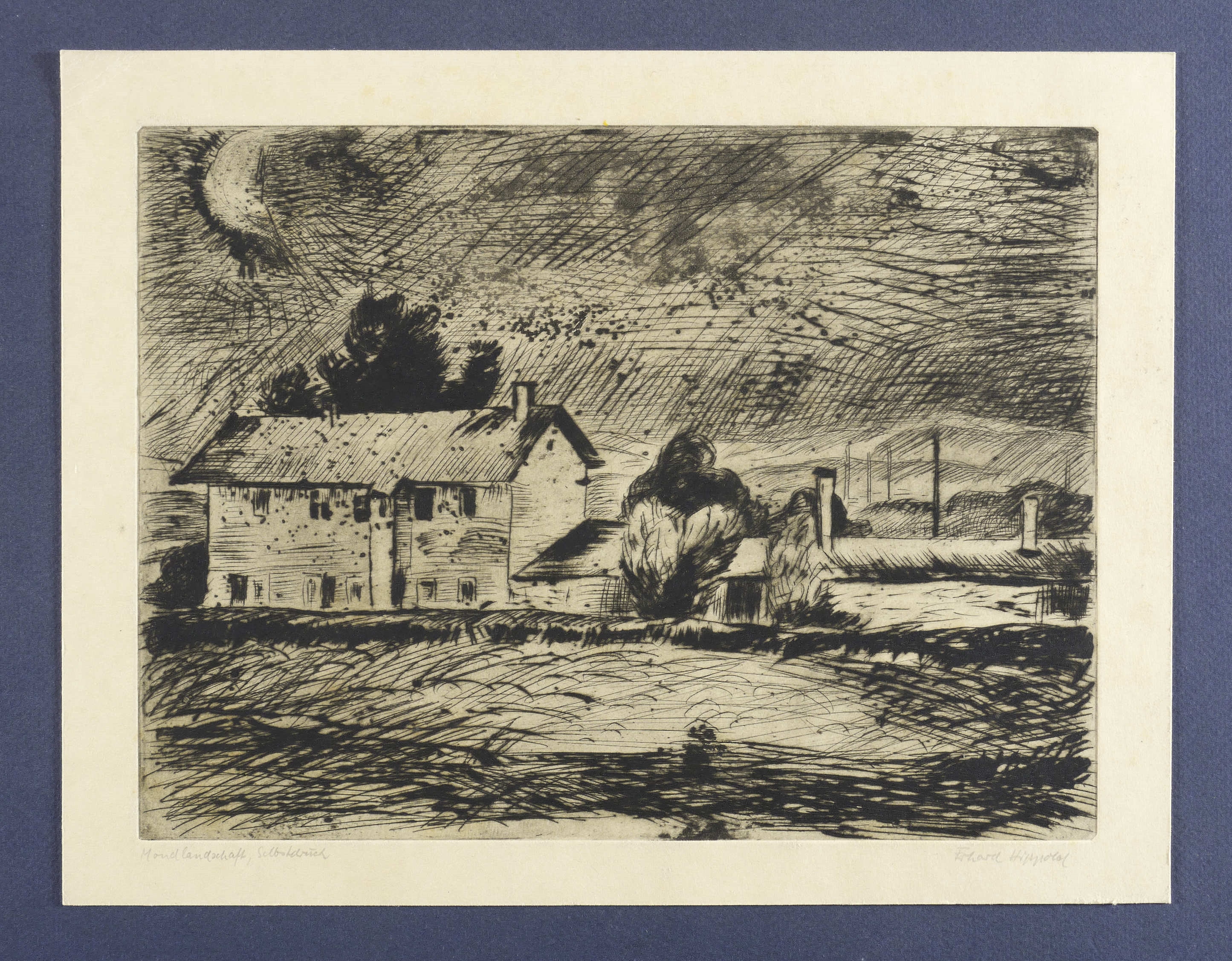 1930-1939. Radierung / Kaltnadel, in Schwarz, auf hellem Kupferdruckkarton. – Originale Künstlergrafik, von Erhard Hippold. – 20,0 x 26,9 cm (Darstellung / Platte), 24 x 31 cm (Blatt).