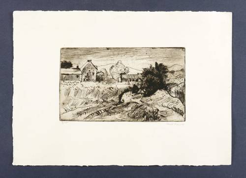 Um 1950. Radierung / Kaltnadel, in Schwarz, auf hellem Kupferdruckkarton. – Originale Künstlergrafik, von Erhard Hippold. – Auflage Exemplar Nr. 3/100. – 12,0 x 20,2 cm (Darstellung / Platte), 25 x 35 cm (Blatt).