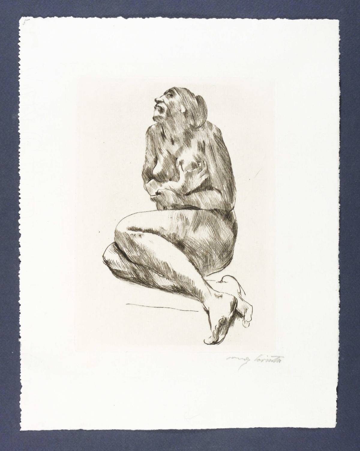 Schwarz 153. – Rechts unten in Bleistift signiert: ″Lovis Corinth″. Links oben nummeriert: ″5″. Wasserzeichen. – Gratiger kontrastreicher Abzug von der frischen Platte. Selten. – Unbeschnittenes Exemplar. Tadelos erhalten. Sehr guter Erhaltungszustand.