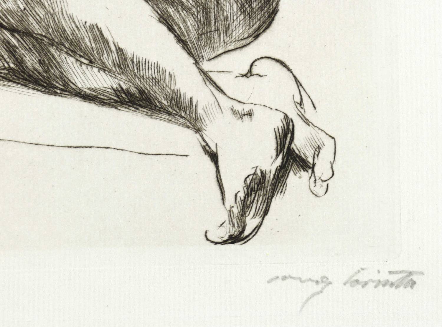 1914. Radierung / Kaltnadel, in Schwarz, auf hellgelbem Van-Gelder-Zonen-Bütten. – Originale Künstlergrafik, von Lovis Corinth. – Auflage Exemplar Nr. 5/20. – 21,8 x 16,0 cm (Darstellung / Platte), 36 x 26 cm (Blatt).