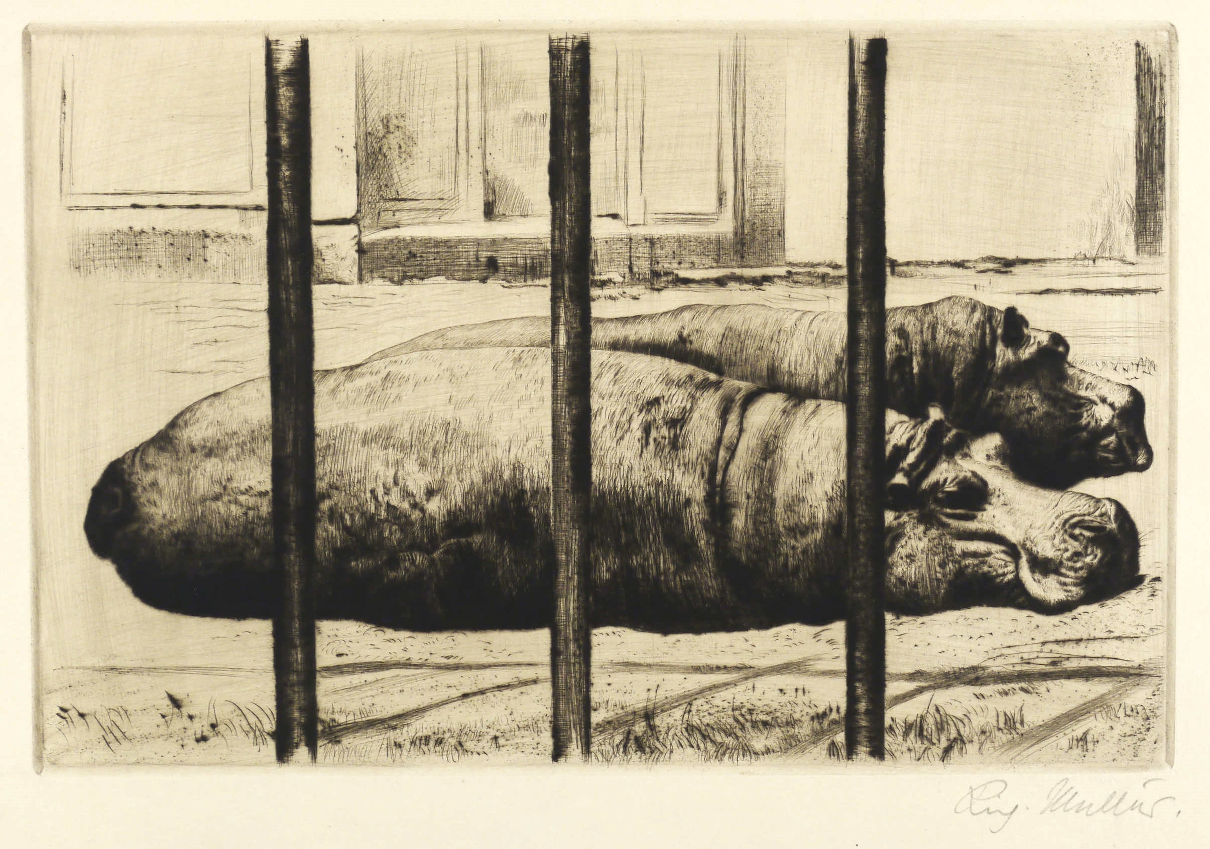 1920-1925. Radierung / Strichätzung, mit Plattenton, in Schwarzbraun, auf Kupferdruckkarton. – Originale Künstlergrafik, von Richard Müller. – 24,0 x 36,5 cm (Darstellung / Platte), 35 x 51 cm (Blatt).