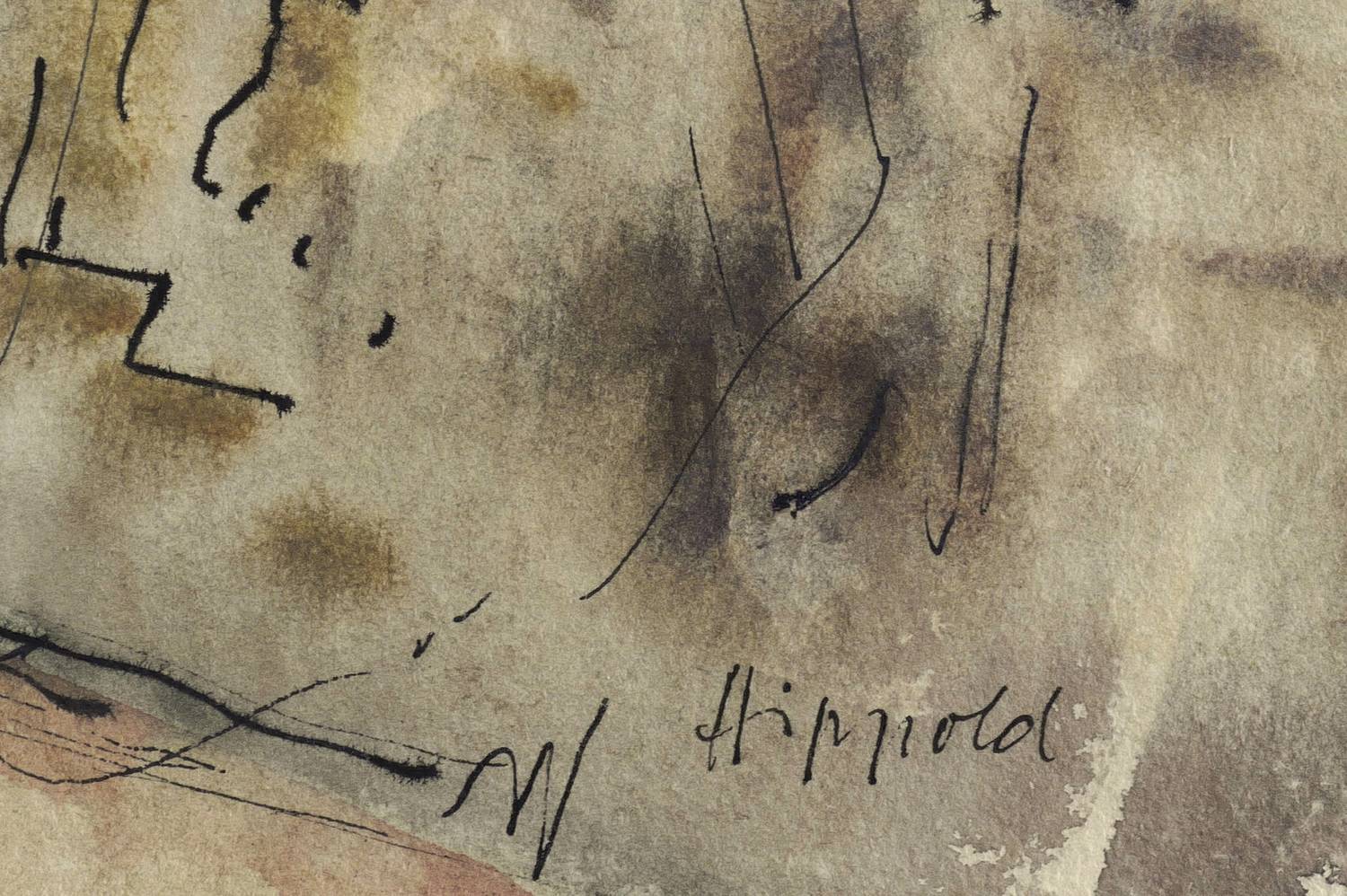 1940. Aquarell, darüber Feder in schwarzer Tusche, auf gelbem Velinkarton. – Originale Künstlergrafik, von Erhard Hippold. – Unikat. – 42,0 x 60,0 cm (Darstellung / Blatt).