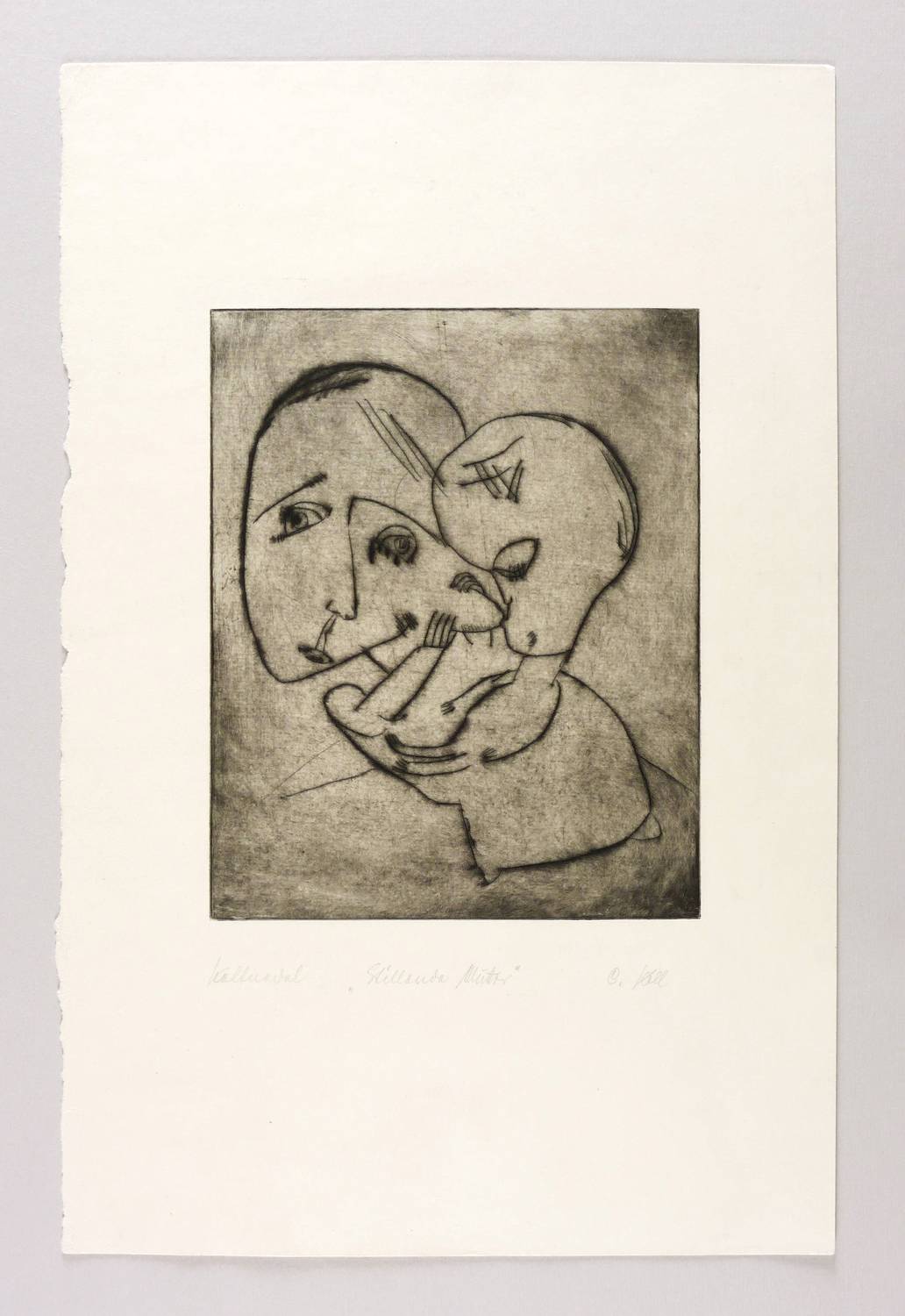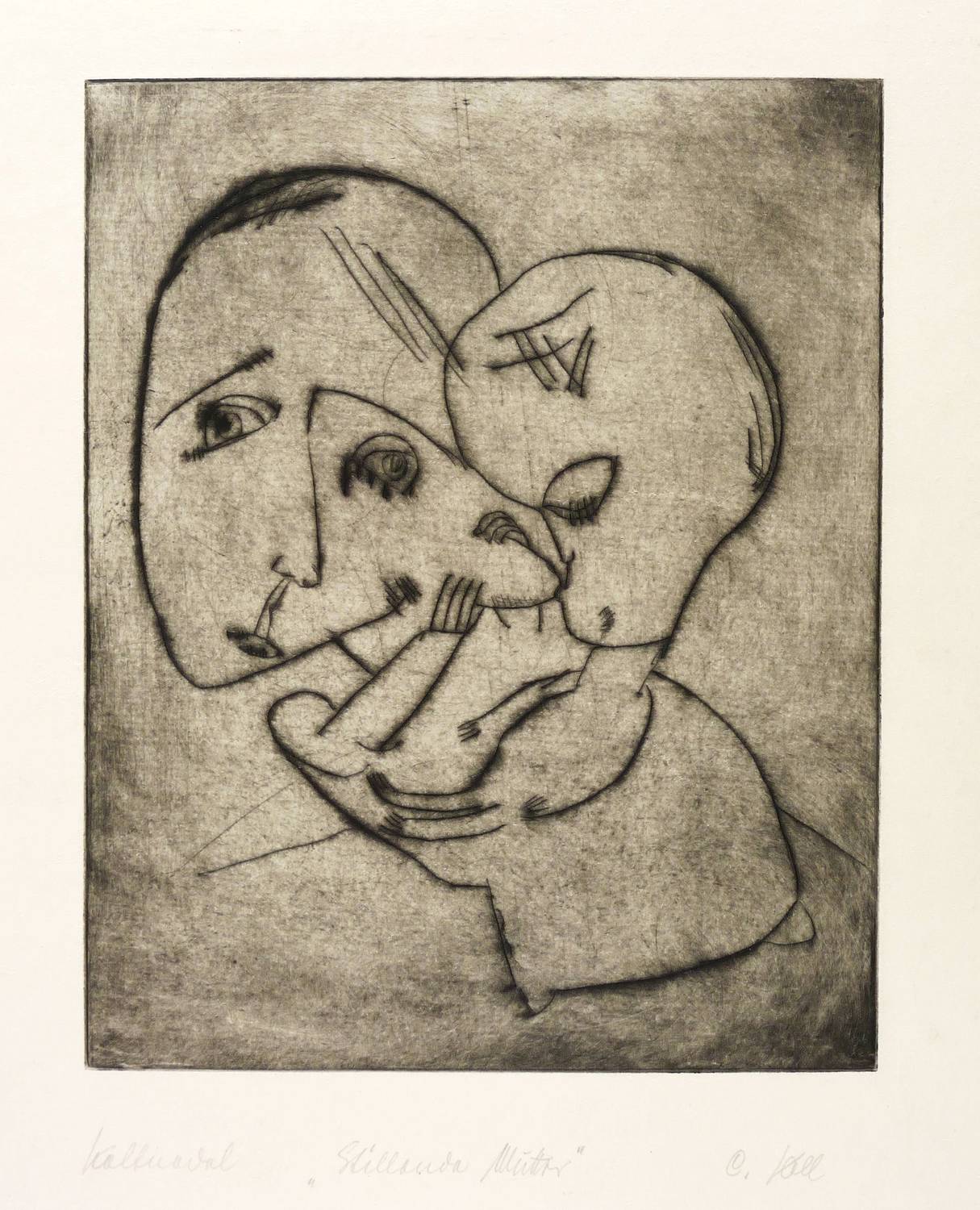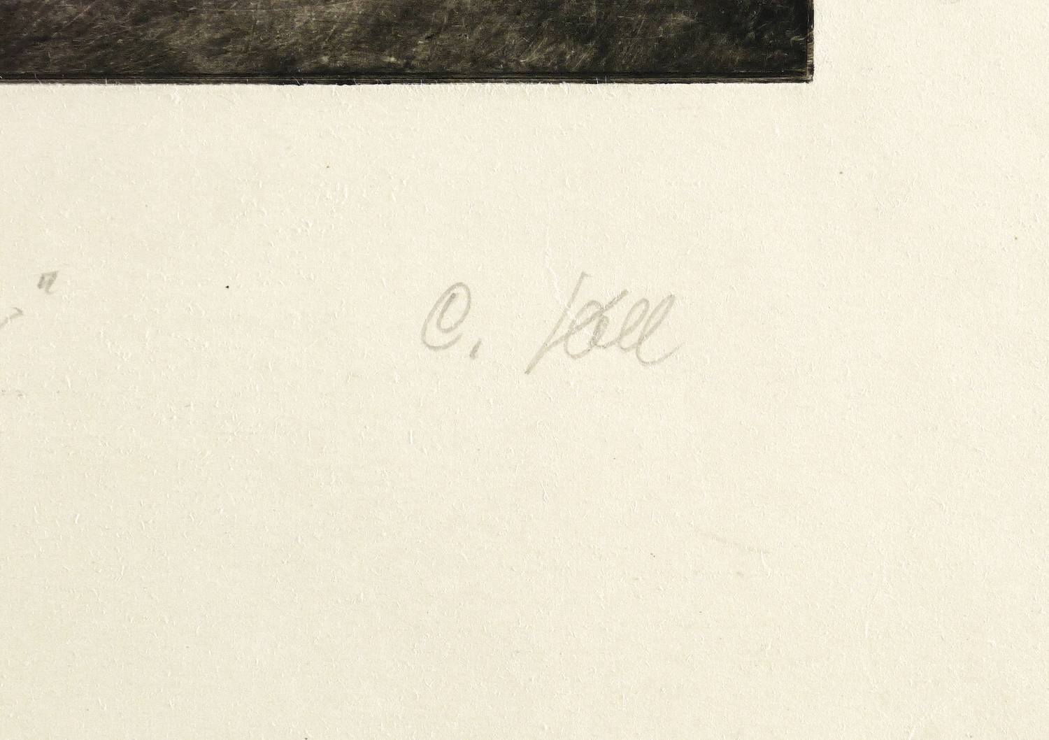 Rechts unten in Bleistift signiert: ″C. Voll″. Links Technikbezeichnung und Titel: ″Kaltnadel / Stillende Mutter″. – Links gerissener, sonst geschnittener Rand. Exemplar wohl originalrandig. Unscheinbare Lagerspuren. Insgesamt dem Alter entsprechend sehr gut erhalten. Sehr guter Zustand.