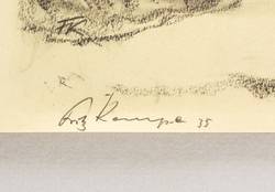 1935. Zeichnung / Graphitzeichnung, auf hartem gelbem Maschinenpapier. – Originale Künstlergrafik, von Fritz Kempe. – Unikat. – 38,0 x 46,5 cm (Darstellung), 42 x 51 cm (Blatt).