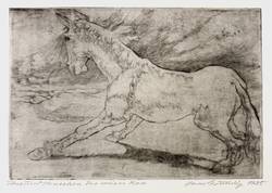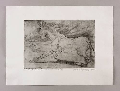 Bernhardt D 19. – Nicht handsigniert. Rechts unten in Bleistift von Lea Grundig bezeichnet: ″Hans Grundig 1935″. Links Titel: ″Tiere und Menschen / Das weisse Ross″. – Postumer Abzug von der originalen Platte, für den Künstler-Nachlass autorisiert durch die Witwe des Künstlers. – Breitrandiges Exemplar. Minimale Lagerspuren. Sehr guter Zustand.