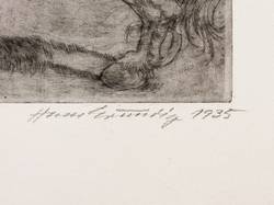 1935. Radierung / Strichätzung, mit Plattenton, in Schwarz, auf hellchamois Weißenborn. – Originale Künstlergrafik, von Hans Grundig. – 23,1 x 33,8 cm (Darstellung / Platte), 38 x 51 cm (Blatt).