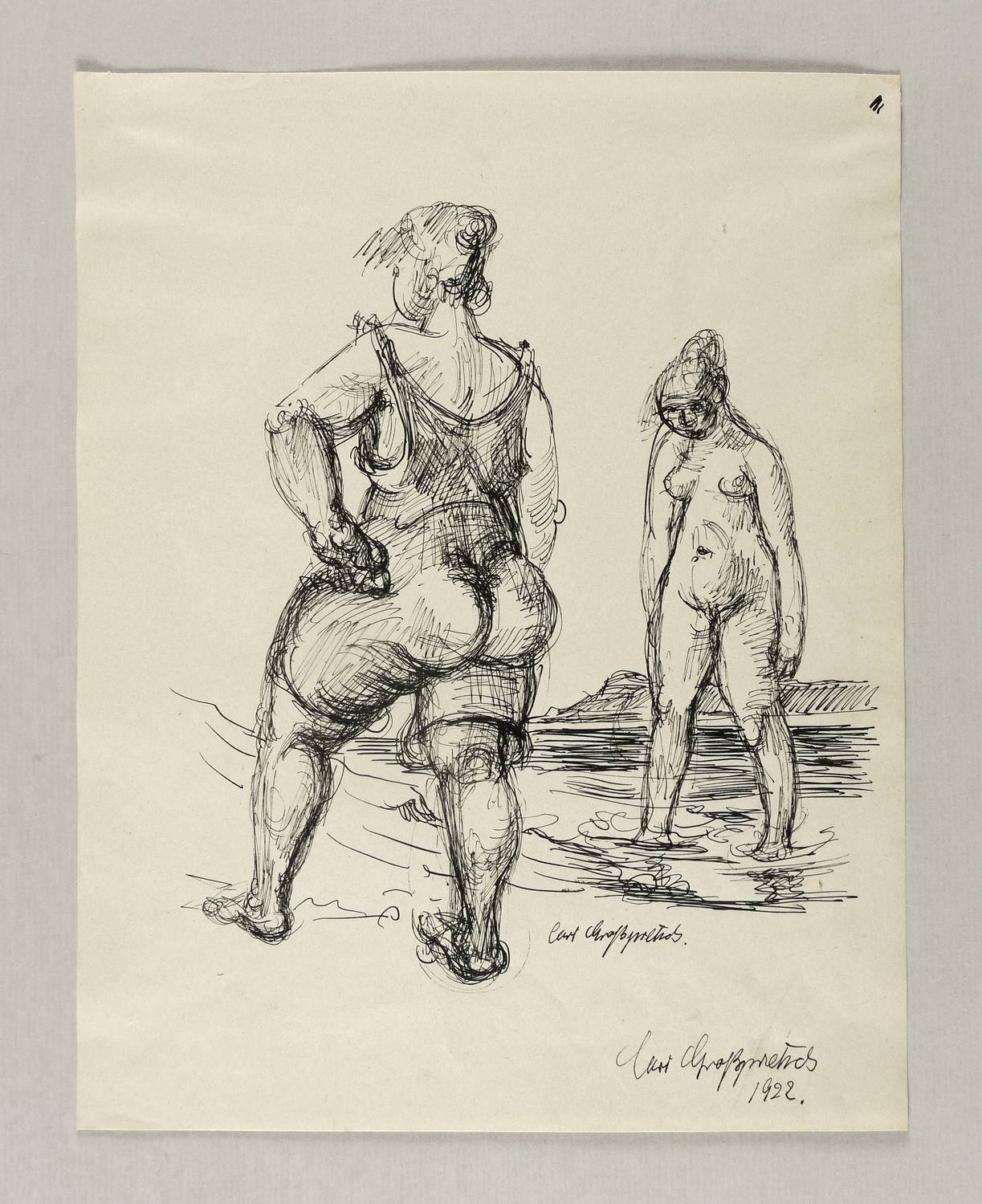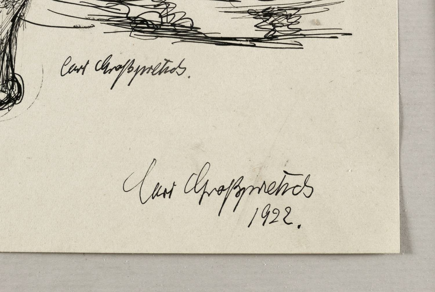 Rechts unten in schwarzer Feder signiert: ″Curt Großpietsch″. Etwas darunter nochmals signiert und datiert: ″Curt Großpietsch 1922.″ – Sehr guter Zustand.
