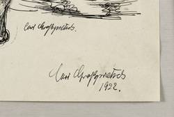 1922. Zeichnung / Federzeichnung, in schwarzer Tusche, auf hellgrau getöntem Velin. – Originale Künstlergrafik, von Curt Großpietsch. – Unikat. – 21,6 x 19,5 cm (Darstellung), 29 x 23 cm (Blatt).