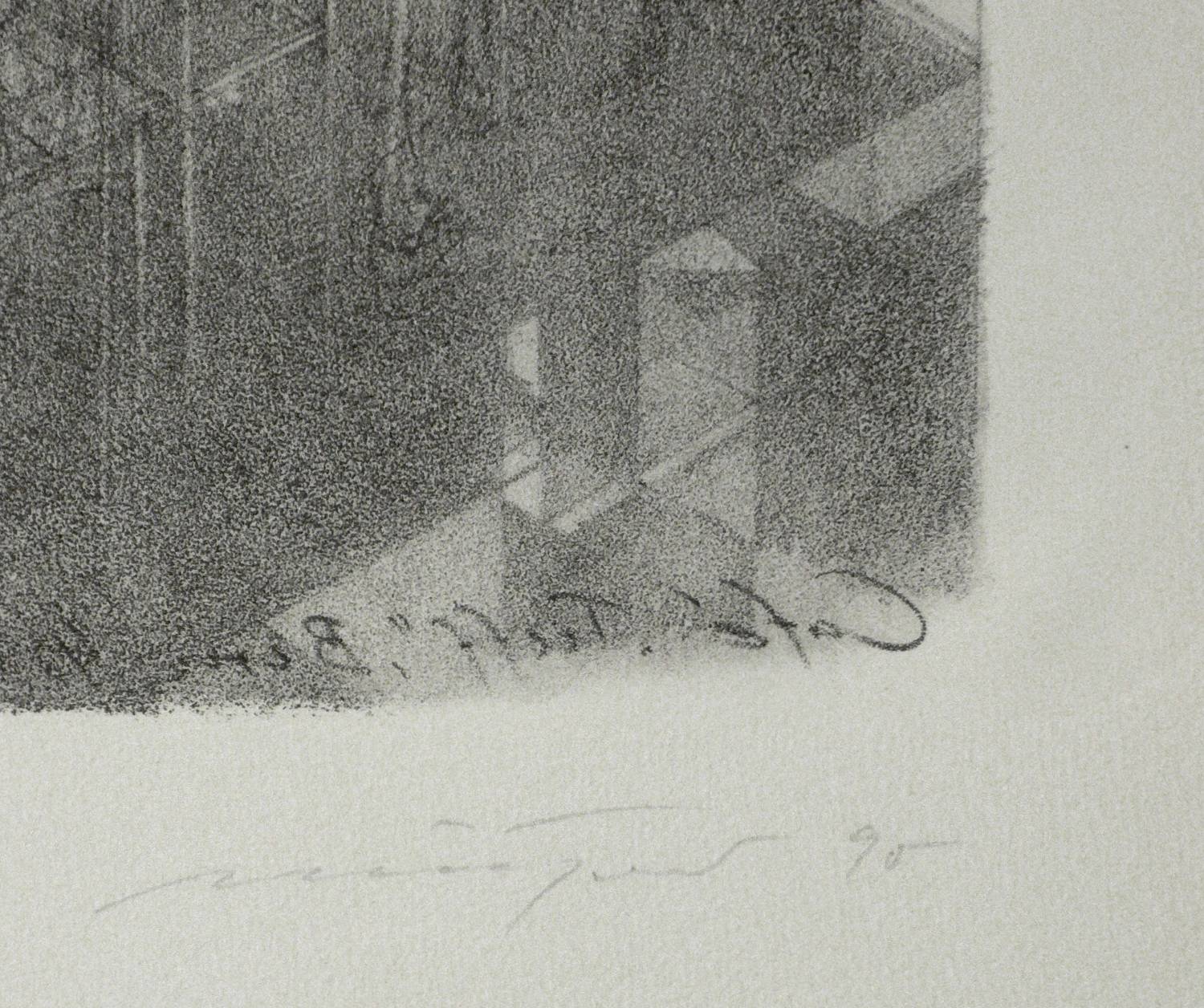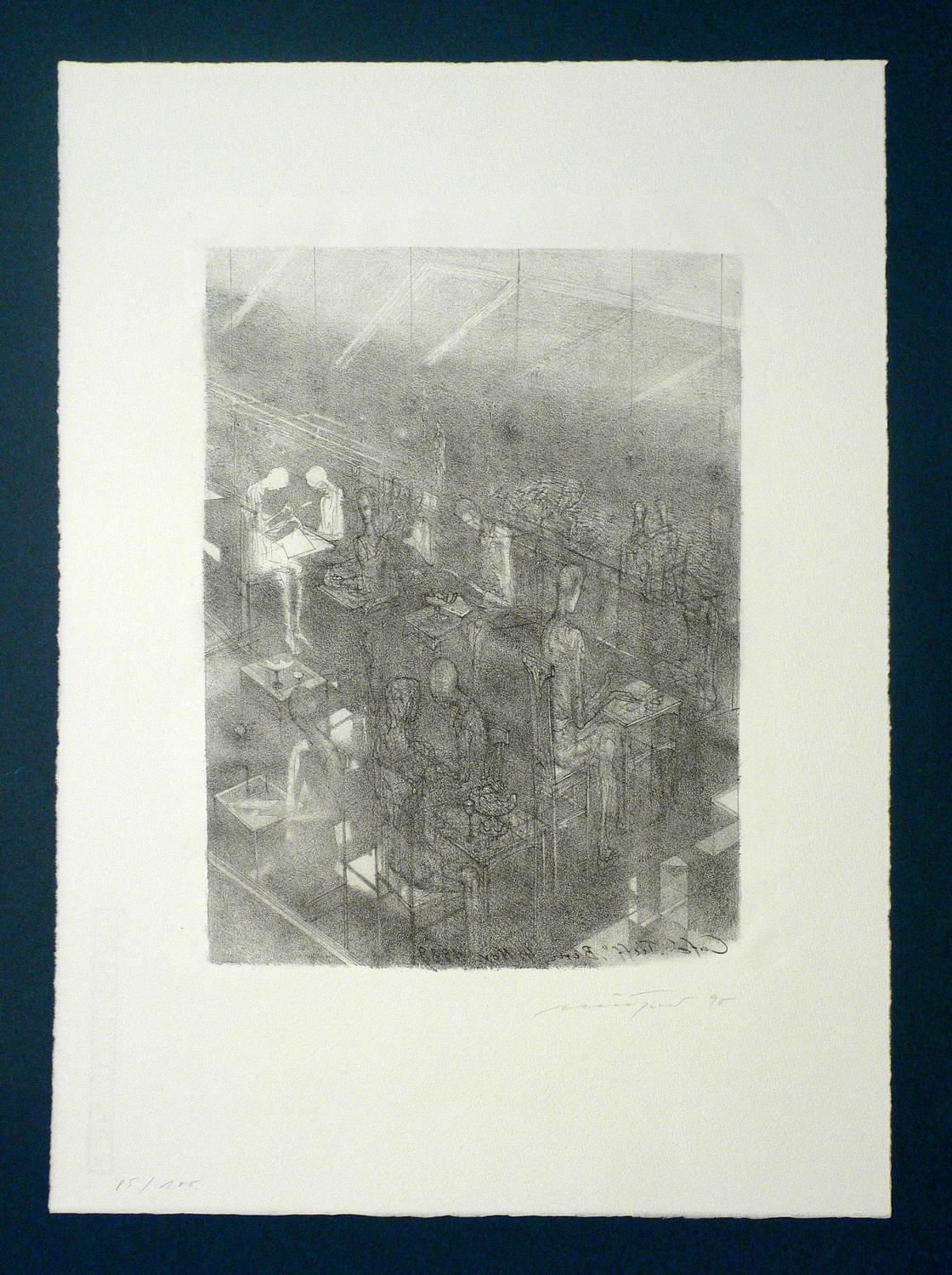 1990. Lithografie / Schablithografie, auf Hahnemühle-Bütten. – Von Rolf Münzner. – Auflage Exemplar Nr. 85/100. – 29,5 x 21,7 cm (Darstellung), 32 x 25 cm (Stein), 47 x 34 cm (Blatt).