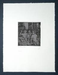 1984/1985. Kupferstich, in Schwarz, mit hellbraunem Plattenton, auf Hahnemühle-Bütten. – Originale Künstlergrafik, von Baldwin Zettl. – Auflage Exemplar Nr. 27/36. – 18,6 x 17,5 cm (Darstellung / Platte), 53,5 x 40 cm (Blatt).