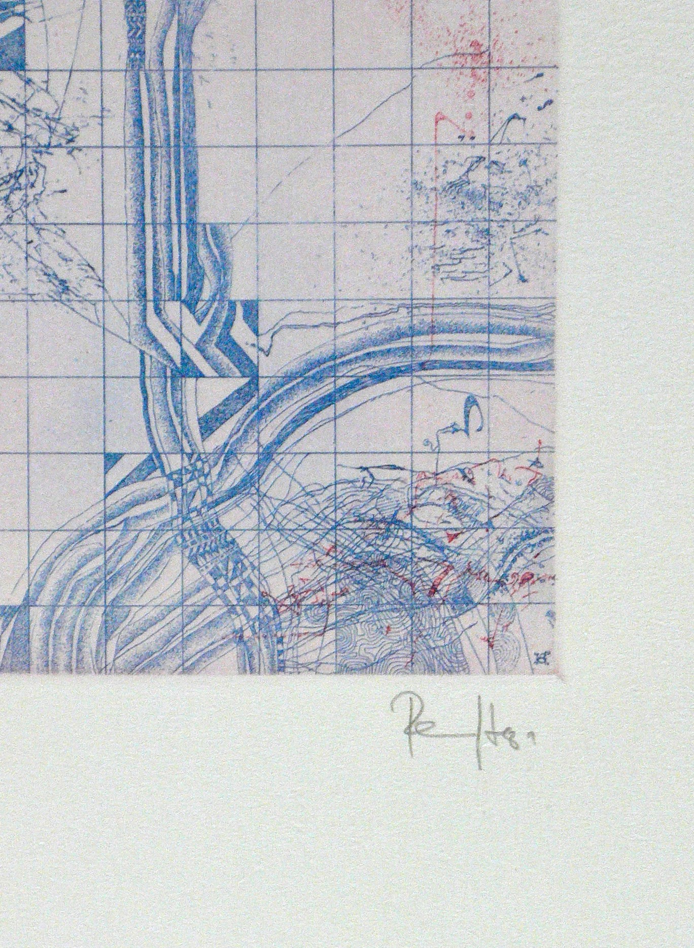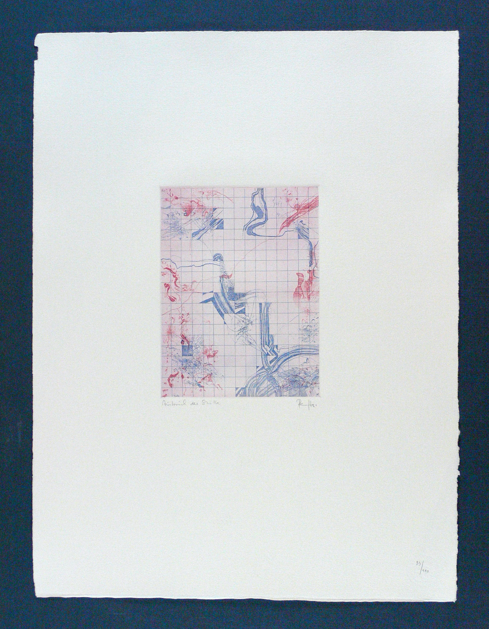 1981. Farbradierung / Strichätzung, in Rot & Blau, mit Plattenton, auf Hahnemühle. – Originale Künstlergrafik, von Thomas Ranft. – Auflage Exemplar Nr. 83/100. – 19,5 x 14,8 cm (Darstellung / Platte), 53 x 40 cm (Blatt).