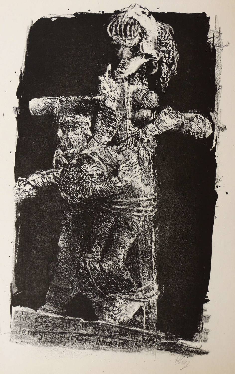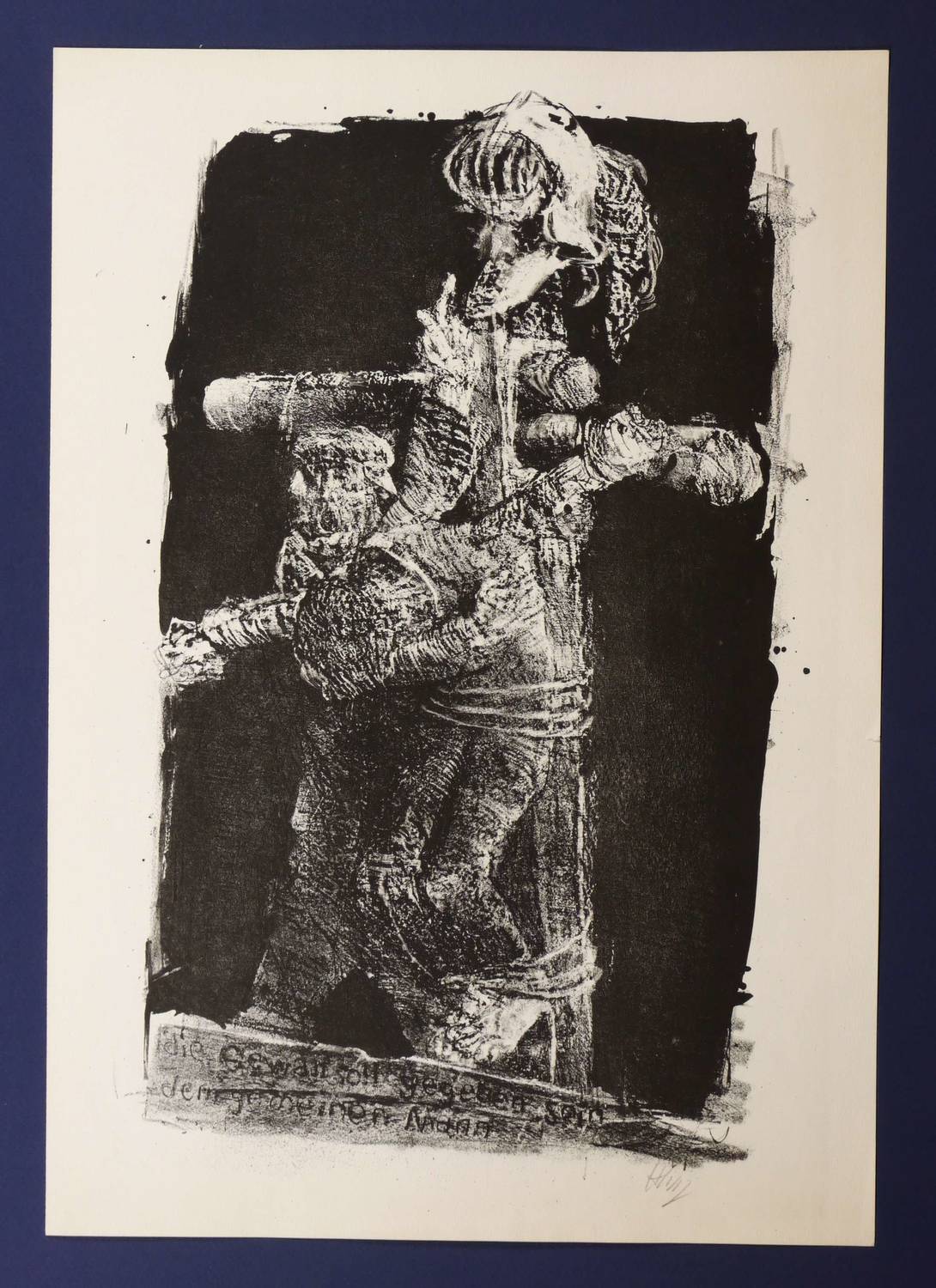 1974. Lithografie / Kreidelithografie, in Schwarz, auf hellchamois Velin. – Originale Künstlergrafik, von Bernhard Heisig. – 46,0 x 28,0 cm (Darstellung / Stein), 50 x 35 cm (Blatt).