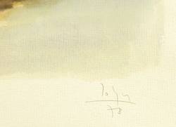 1978. Lithografie / Kreidelithografie, aquarelliert, auf hellem Maschinenbütten. – Originale Künstlergrafik, von Joachim John. – Auflage Exemplar Nr. 85/150. – 44,0 x 33,5 cm (Darstellung), 58 x 45 cm (Blatt).