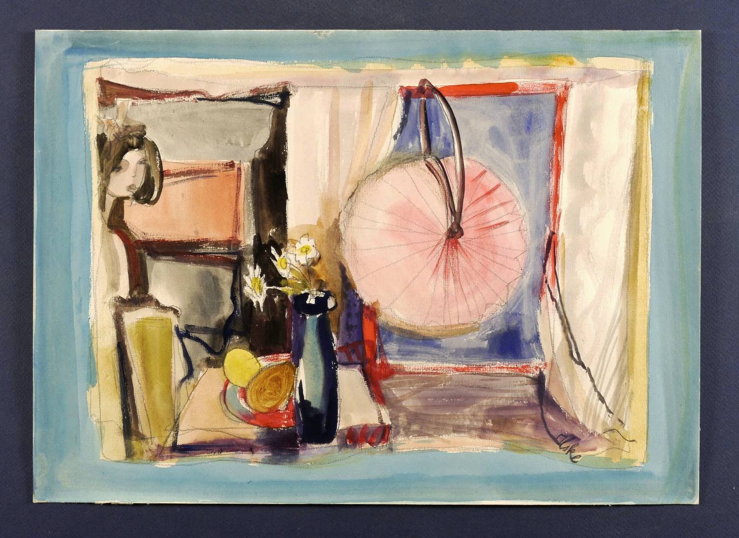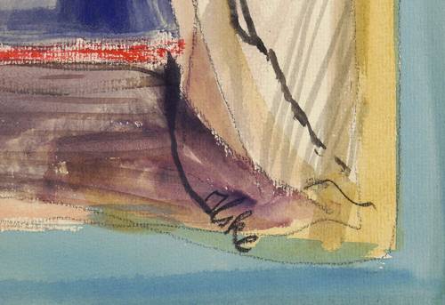 Um 1960. Aquarell, über Bleistift, auf hellem Zeichenkarton. – Originale Künstlergrafik, von Ilske Schwimmer. – Unikat. – 29,7 x 41,8 cm (Darstellung / Blatt).