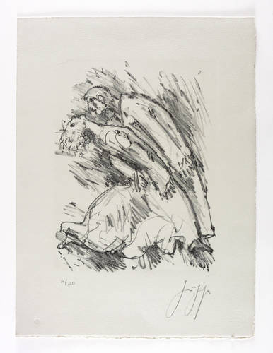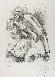 Um 1990. Lithografie / Kreidelithografie, in Schwarz, auf schwerem hellgrauem Hahnemühle. – Originale Künstlergrafik, von Günter Grass. – Auflage Exemplar Nr. 78/120. – 35,3 x 26,6 cm (Darstellung / Druckbild), 54 x 40 cm (Blatt).