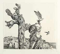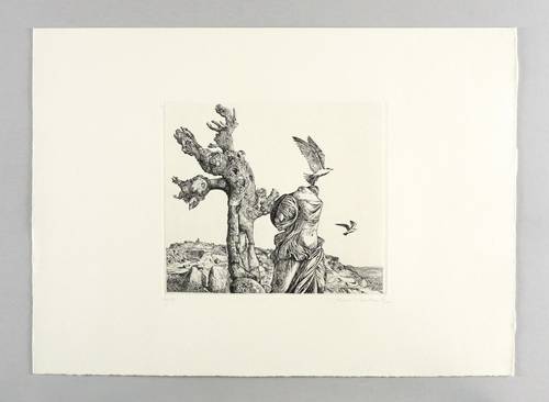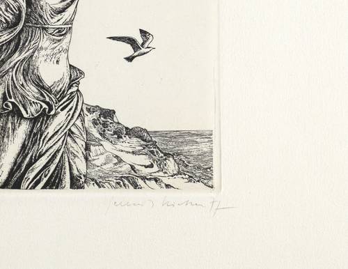 1977. Radierung / Strichätzung, in Schwarz, auf schwerem hellchamois Bütten. – Originale Künstlergrafik, von Gerenot Richter. – Auflage Exemplar Nr. 6/10. – 21,5 x 24,7 cm (Darstellung / Platte), 39 x 54 cm (Blatt).
