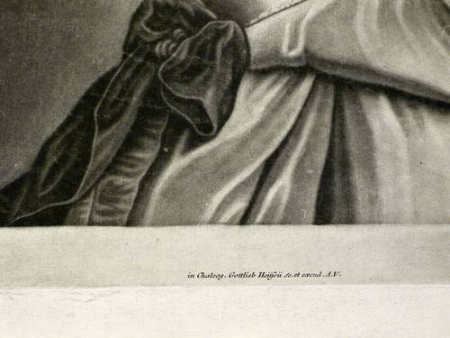 Im unteren Rand der Platte nummeriert ″No. 18″ und signiert: ″in Chalcog. Gottlieb Heissii Sc. et excud. A.V.″ - Nicht ganz deutliches Wasserzeichen ″WALDSL(?)/(..)ZEL(?)″. – Schöner kontrastreicher Abzug. – Breitrandiges Blatt mit ausgelegener bzw. geglätteter horizontaler Mittelfalte. Sonst keine Mängel ersichtlich. Insgesamt guter Gesamteindruck.