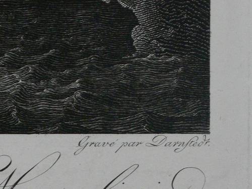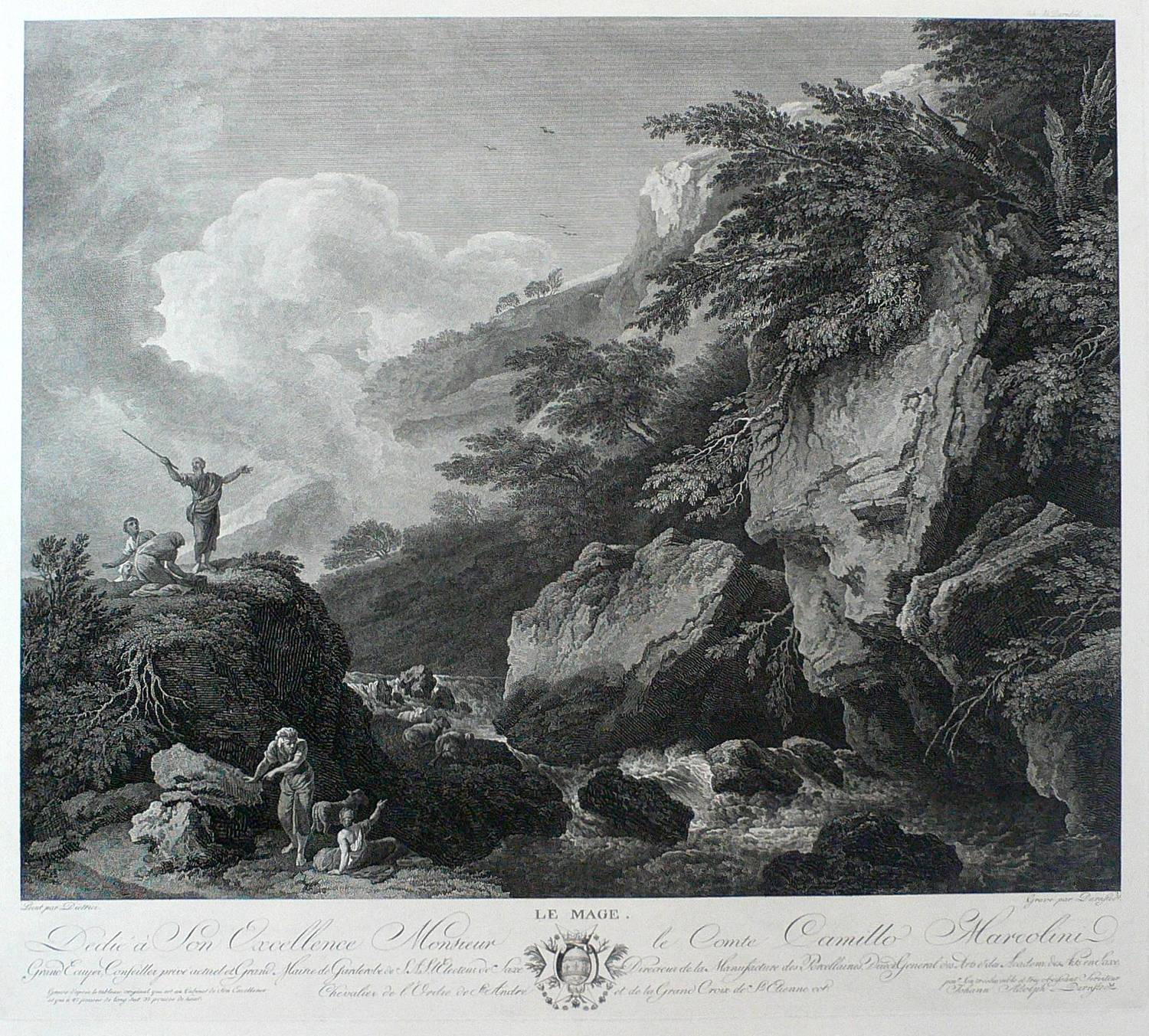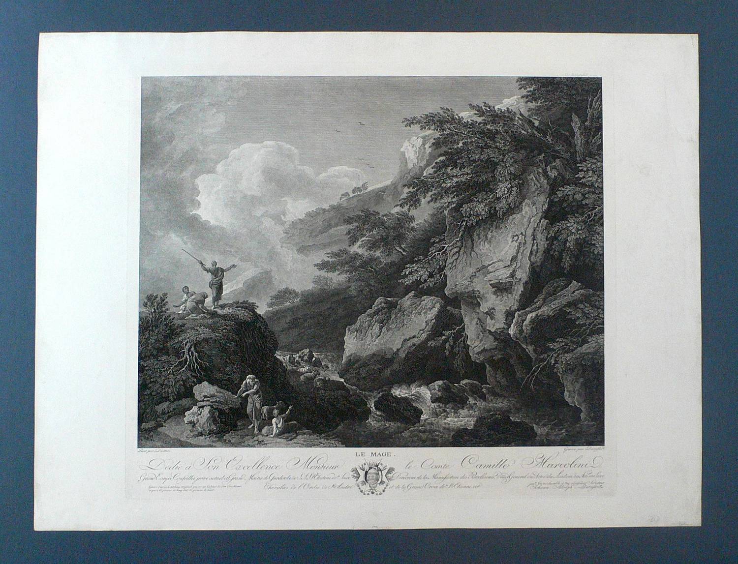 In der Platte rechts oben unscheinbar signiert und datiert: ″Joh. Ad. Darnstedt Sc. 1800″. Im Schriftfeld unterhalb der Darstellung bezeichnet: ″Peint par Dietrici. / Grave par Darnstedt.″ Mittig betitelt und mit großzügiger Widmung an Graf Camillo Marcolini: ″Dedie a Son Excellence Monsieur le Comte Camillo Marcolini (...)″. – Nach dem Gemälde ″Der Magier unter den Hirten″ von Dietricy. - Seltenes Hauptblatt des Künstlers! – Breiter originaler Rand um die Platte. Geringe Lagerspuren. Insgesamt sehr schöner Zustand.