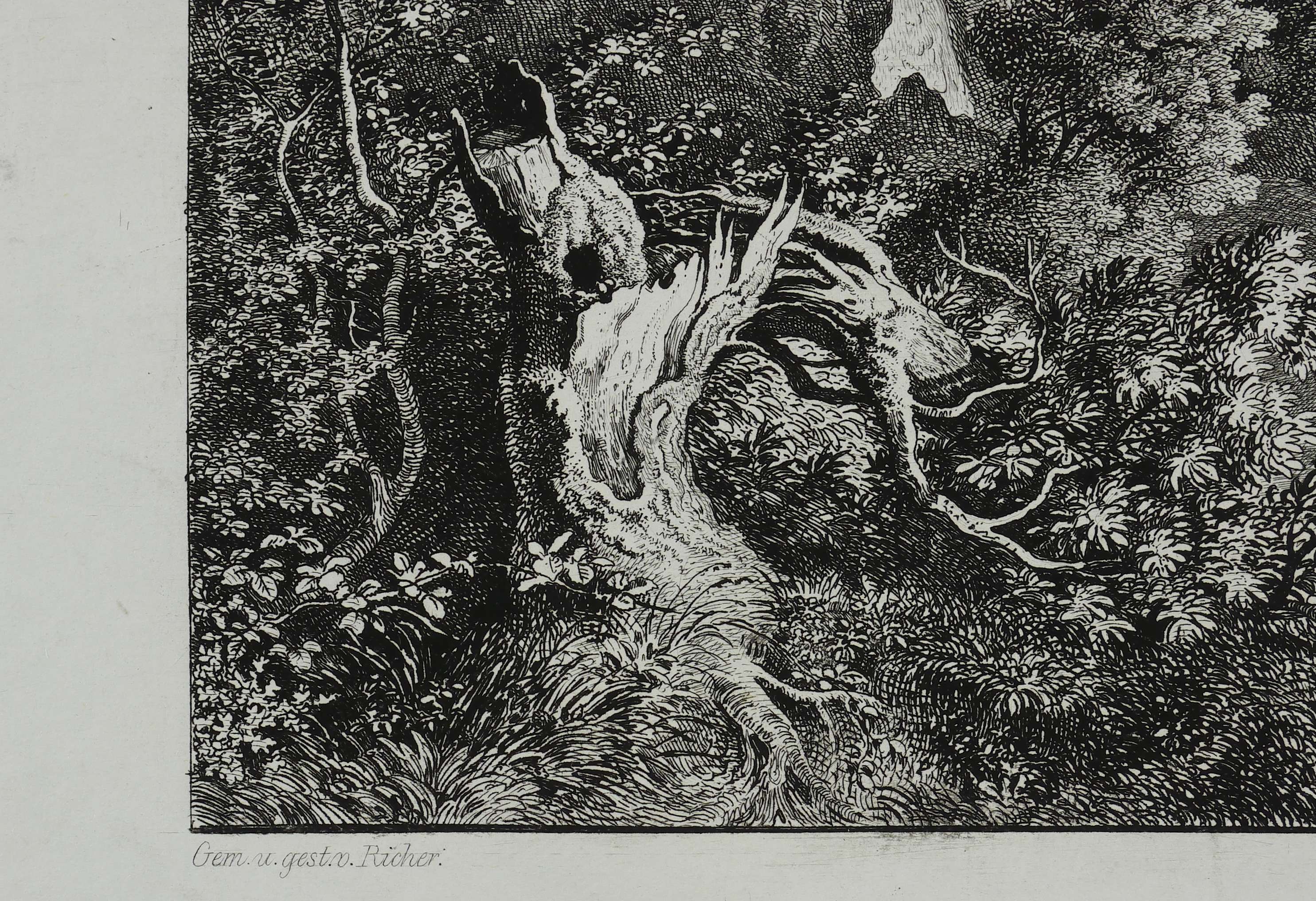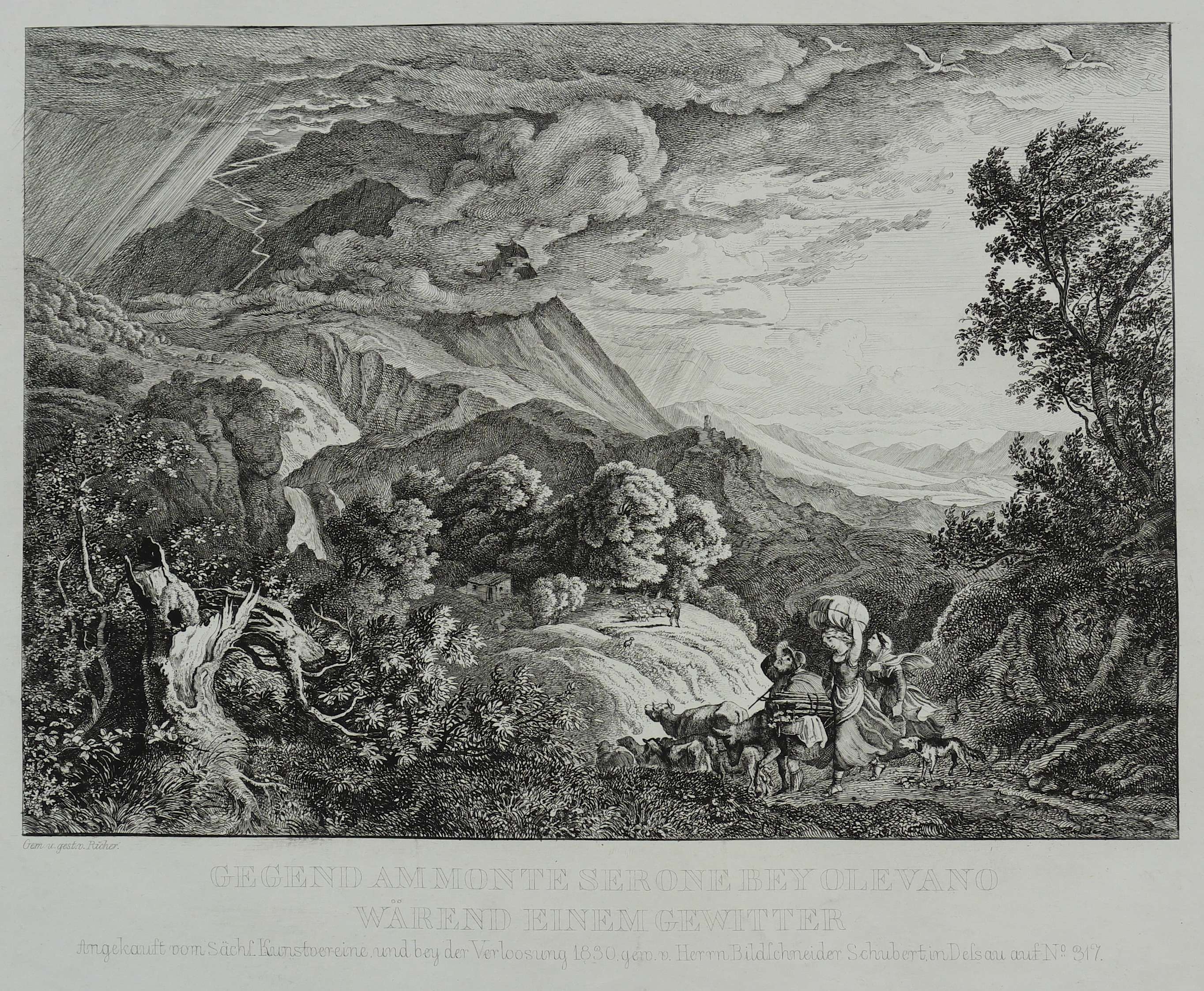 Kovalevski B-C- 51. Hoff-Budde 199 V (von V). Hoff 163. – Aus: Bilderchronik des Sächsischen Kunstvereins (Dresden: Sächsischer Kunstverein 1828-1836). – In der Platte links unten signiert: ″Gem. u. gest. v. Richter.″ In der Mitte betitelt und bezeichnet ″Angekauft vom Sächs. Kunstvereine und bey der Verloosung 1830. gew. v. Herrn Bildschneider Schubert in Dessau auf No. 371 ... ″ – Originalrandiges Blatt mit schwachen Lagerspuren. Im Randbereich partiell kaum merklich angeschmutzt und im oberen Rand mit kleinerem Einriss. Ingesamt guter Erhaltungszustand.