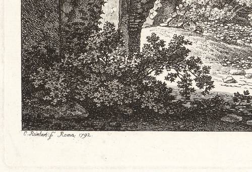 Andresen 58. – In der Platte links unten signiert und datiert: ″C. Reinhart f. Roma 1792.″ Mittig Titel. – Umlaufend schmales Rändchen um die Platte. Leichte Lagerspuren. Insgesamt gute Erhaltung.
